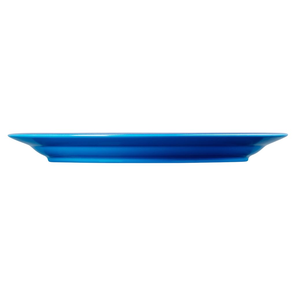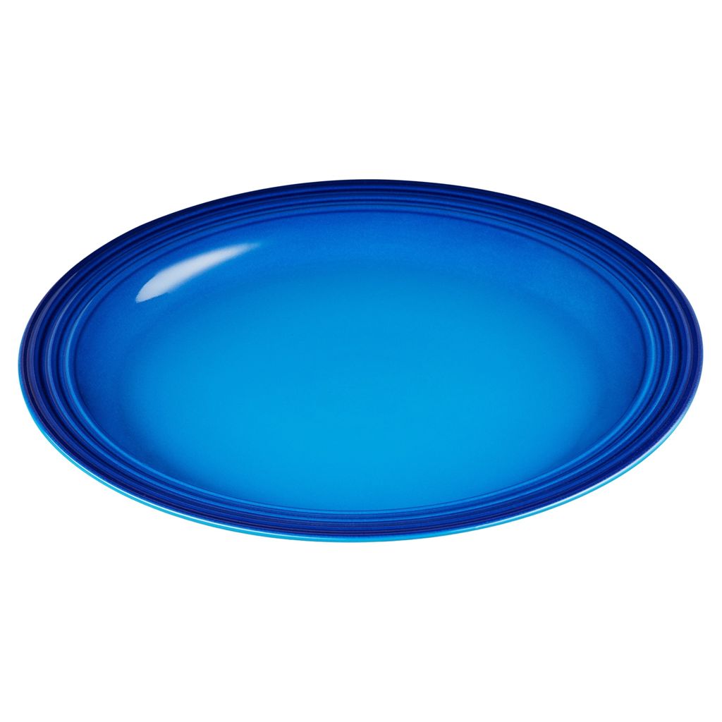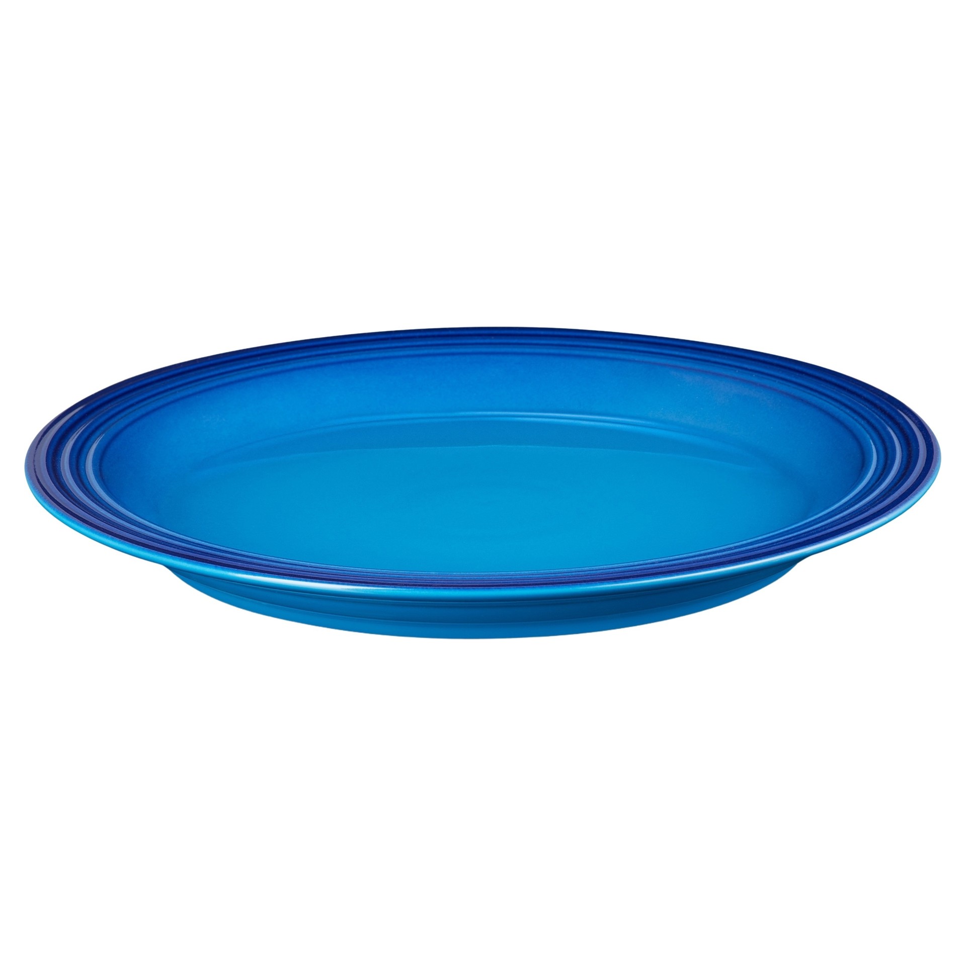 Each piece of Le Creuset dinnerware is manufactured using the same methodical process used for all stoneware items. The durable, colorful outer glaze perfectly matches the other stoneware pieces. These classic 27 cm plates feature a recessed basin for holding liquids and a sleek wing with Le Creuset's iconic three rings.
