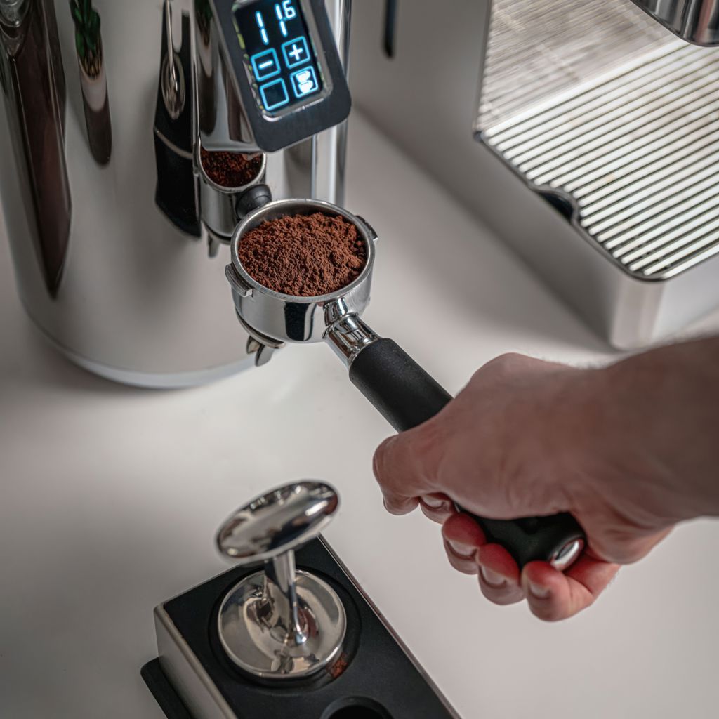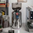 Coffee grinder with 500 g Tritan hopper and smooth, elegant chrome-plated aluminum body. The integrated LCD screen offers a user-friendly interface, allowing you to choose from a variety of grinding programs to suit your specific coffee preferences.