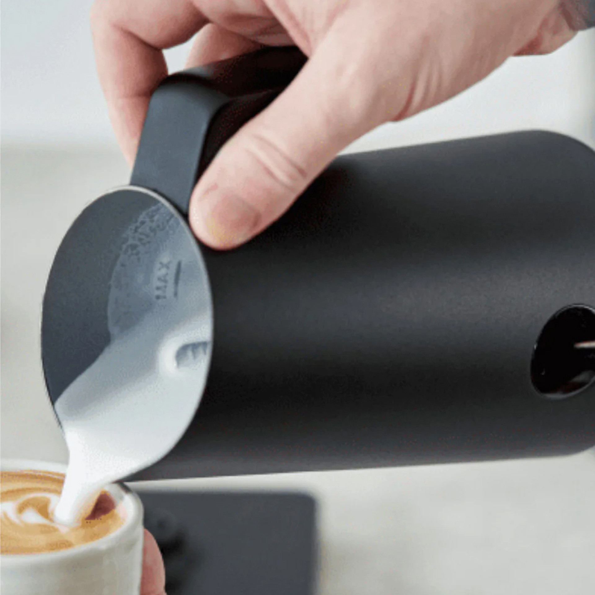 The NanoFoamer PRO is small enough to pour latte art directly. For ultra-detailed creations, simply transfer the microfoamed milk into your preferred latte art pitcher.
