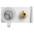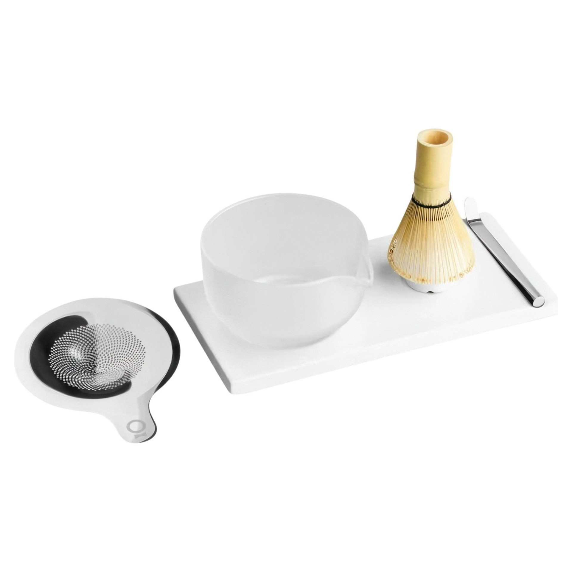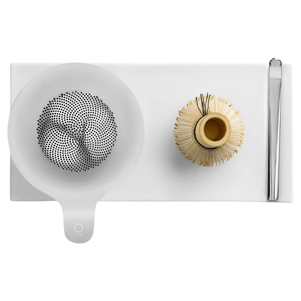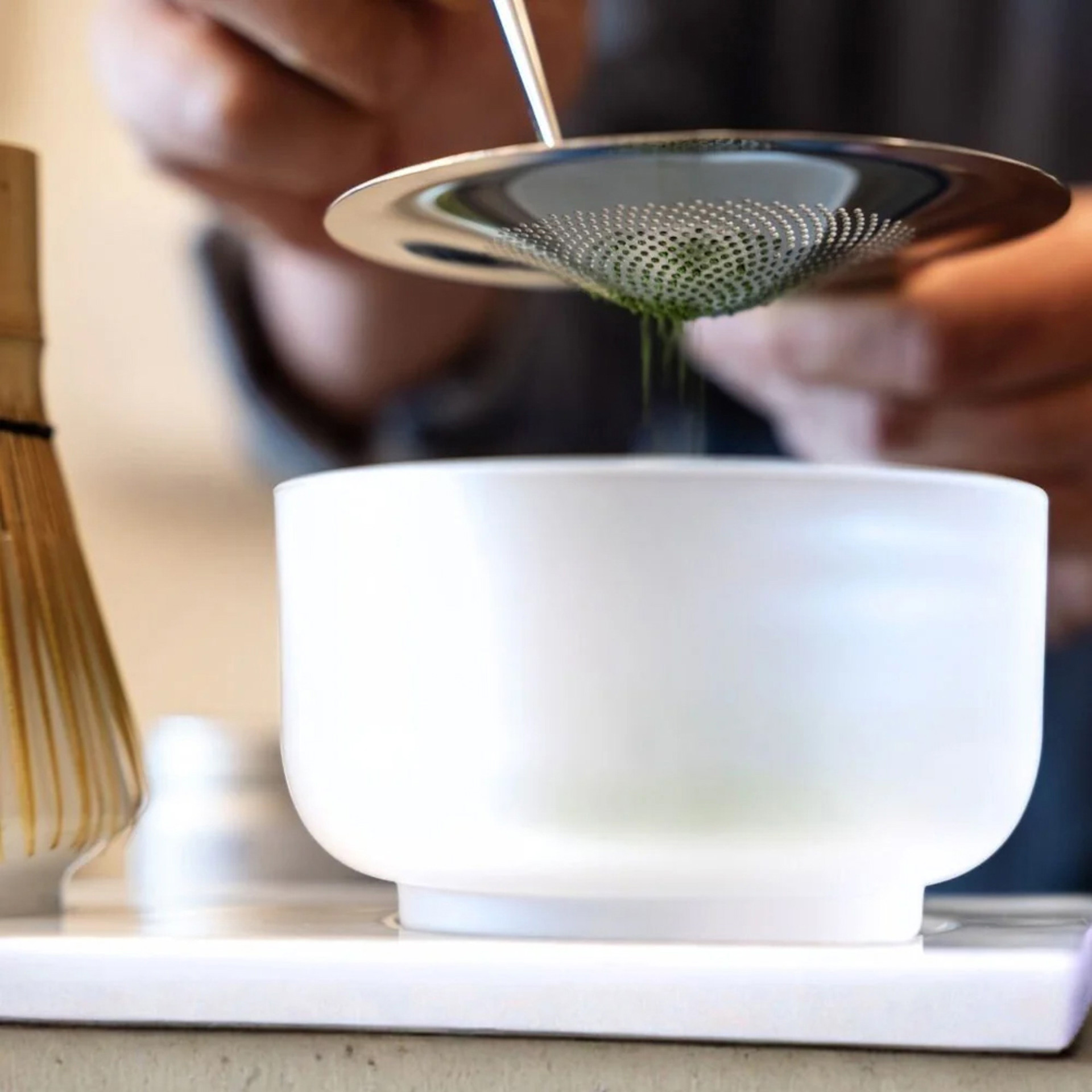 • A sleek metal chashaku and sifter for an even, lump-free blend