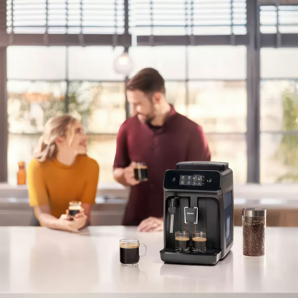 Enjoy the delicious taste and aroma of coffee from fresh beans, at the perfect temperature, thanks to our intelligent brewing system. The classic milk frother allows you to create a silky smooth cappuccino or latte macchiato with ease.