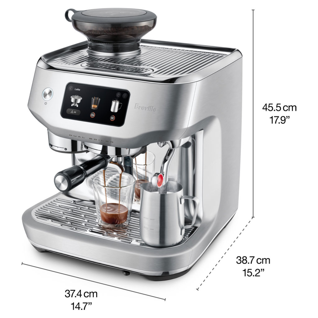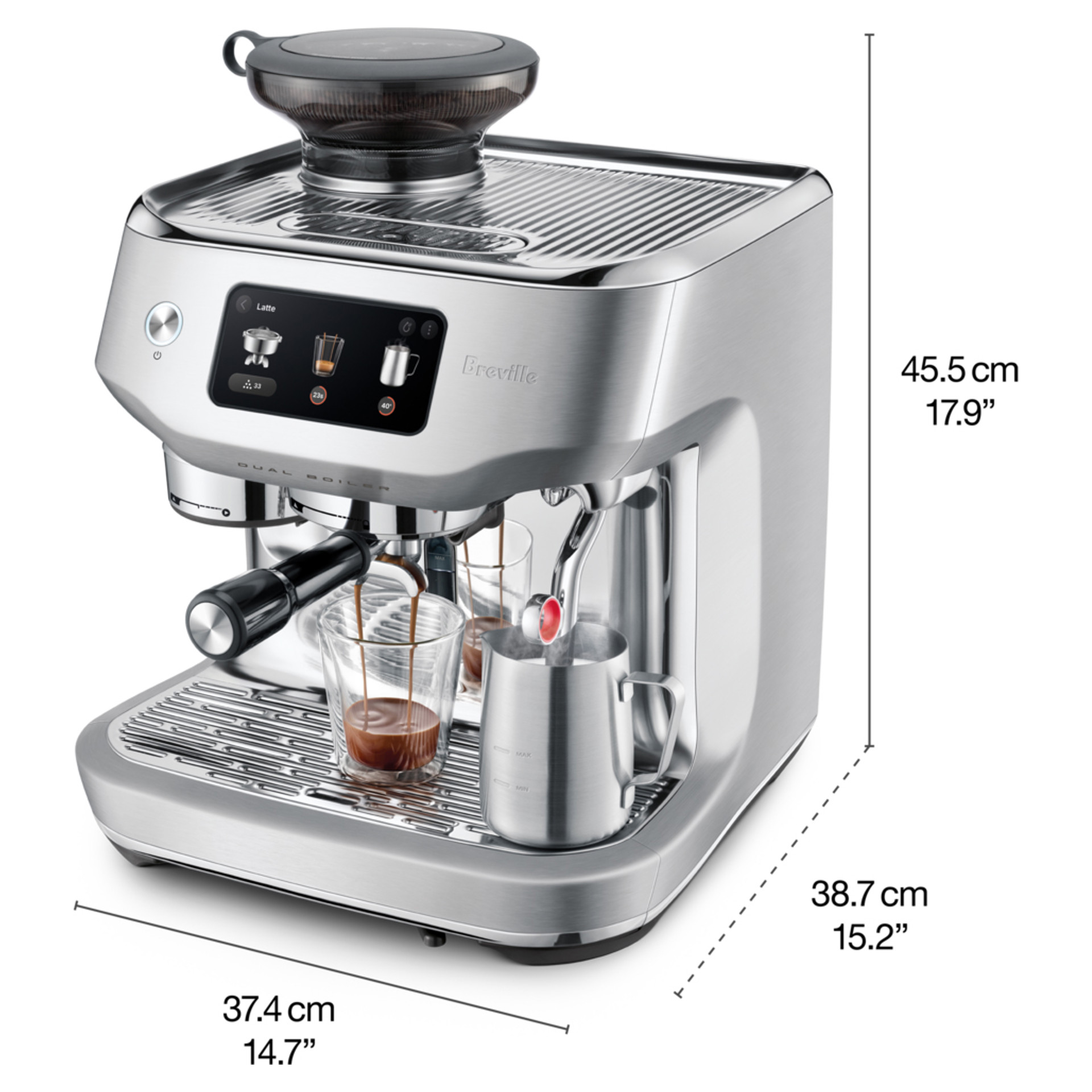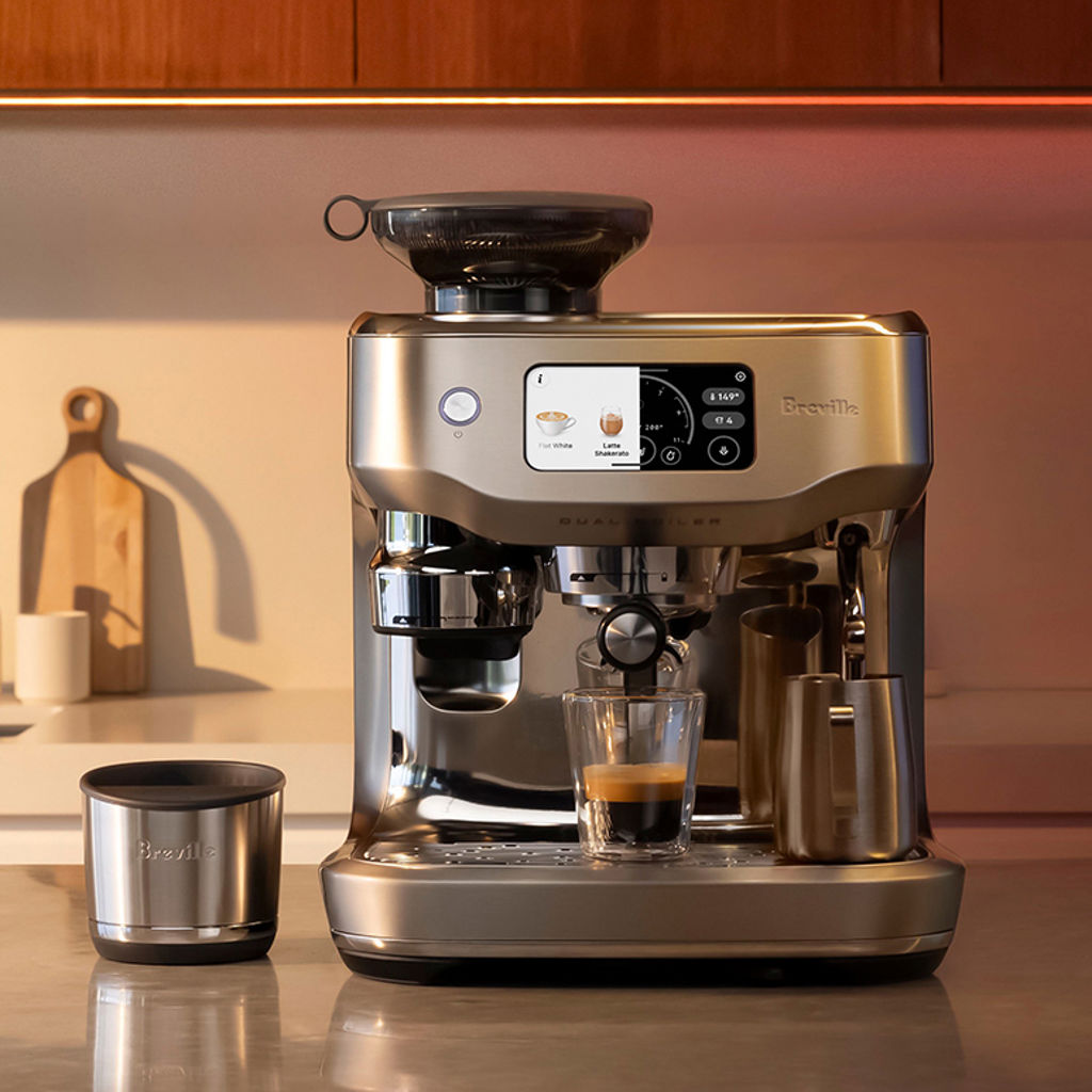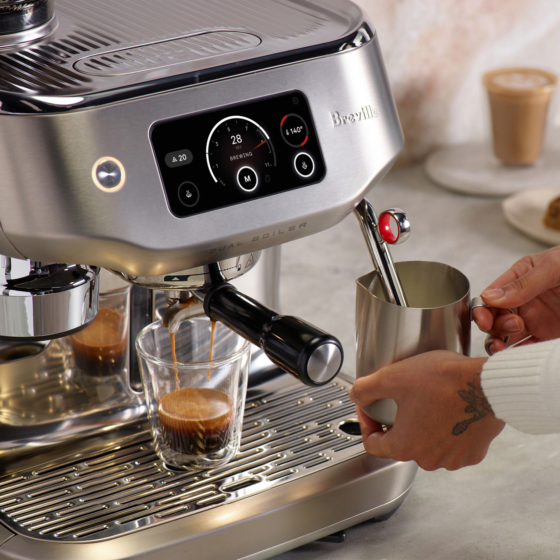 The new Auto Dial-In system monitors every extraction and helps improve your next espresso. Auto MilQ™ delivers silky microfoam hands-free, with optimized settings for dairy, soy, almond, and oat milk. Plus, connect with the new Breville+ Coffee App to power on and preheat your machine remotely.