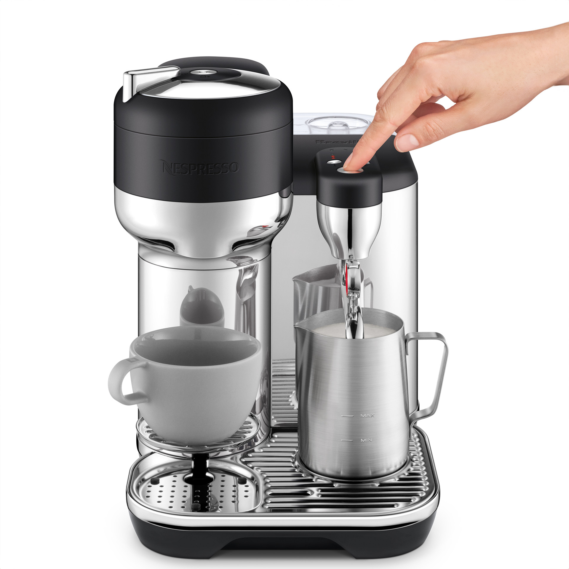 Auto MilQ hands-free milk texturing.