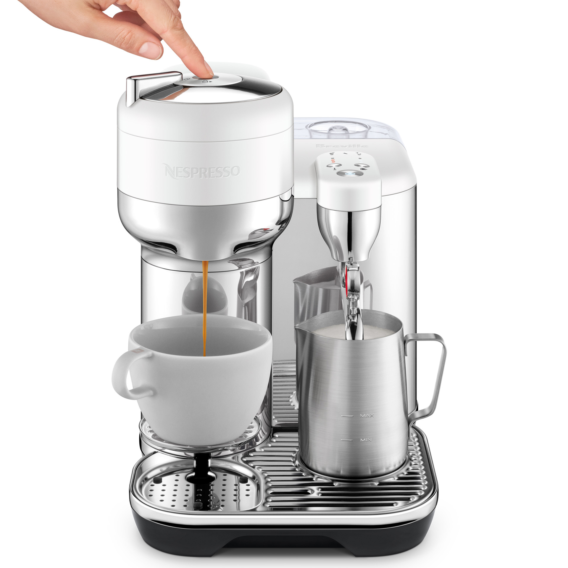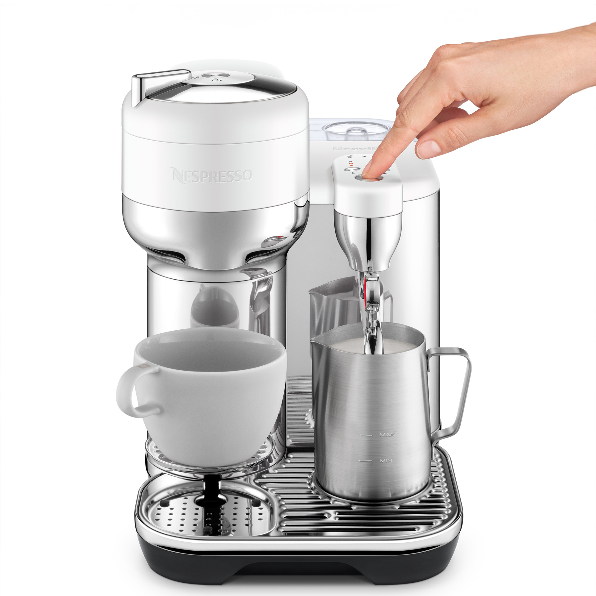 Auto MilQ hands-free milk texturing.