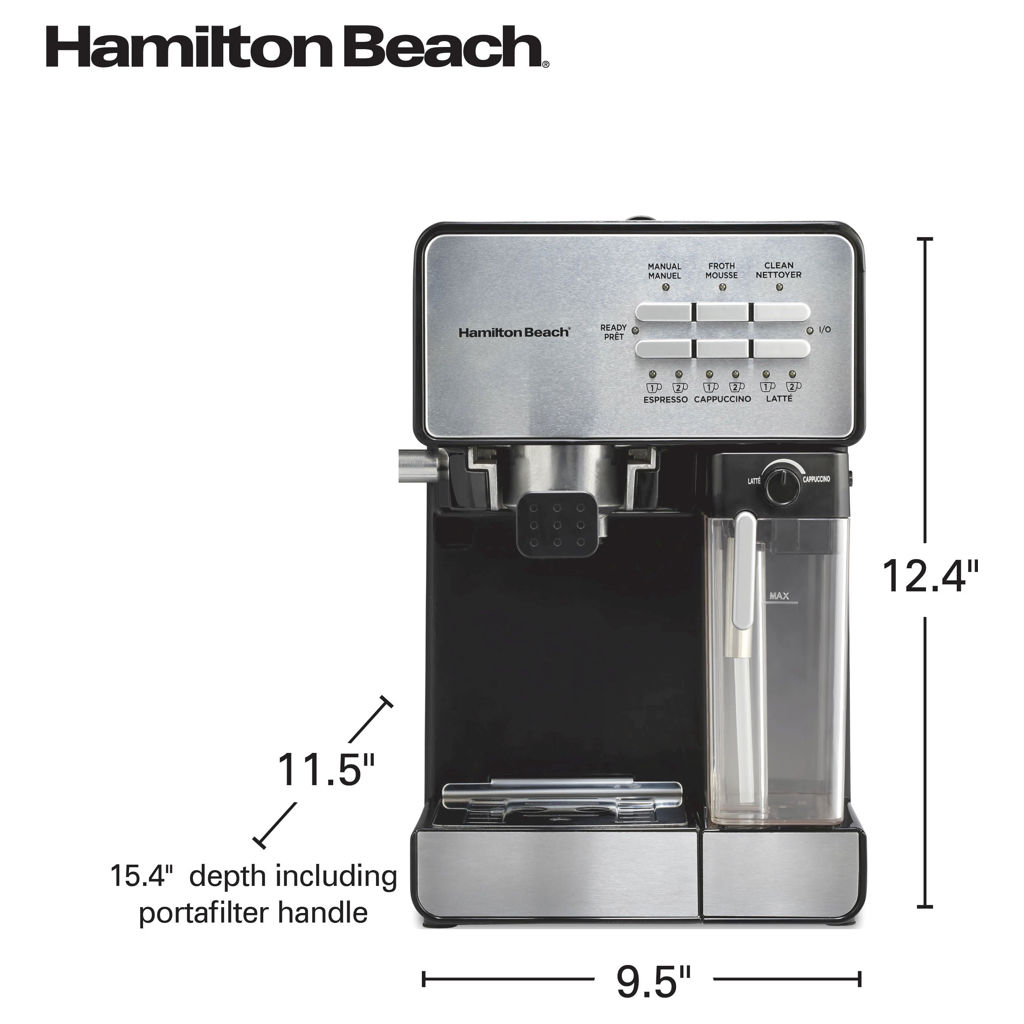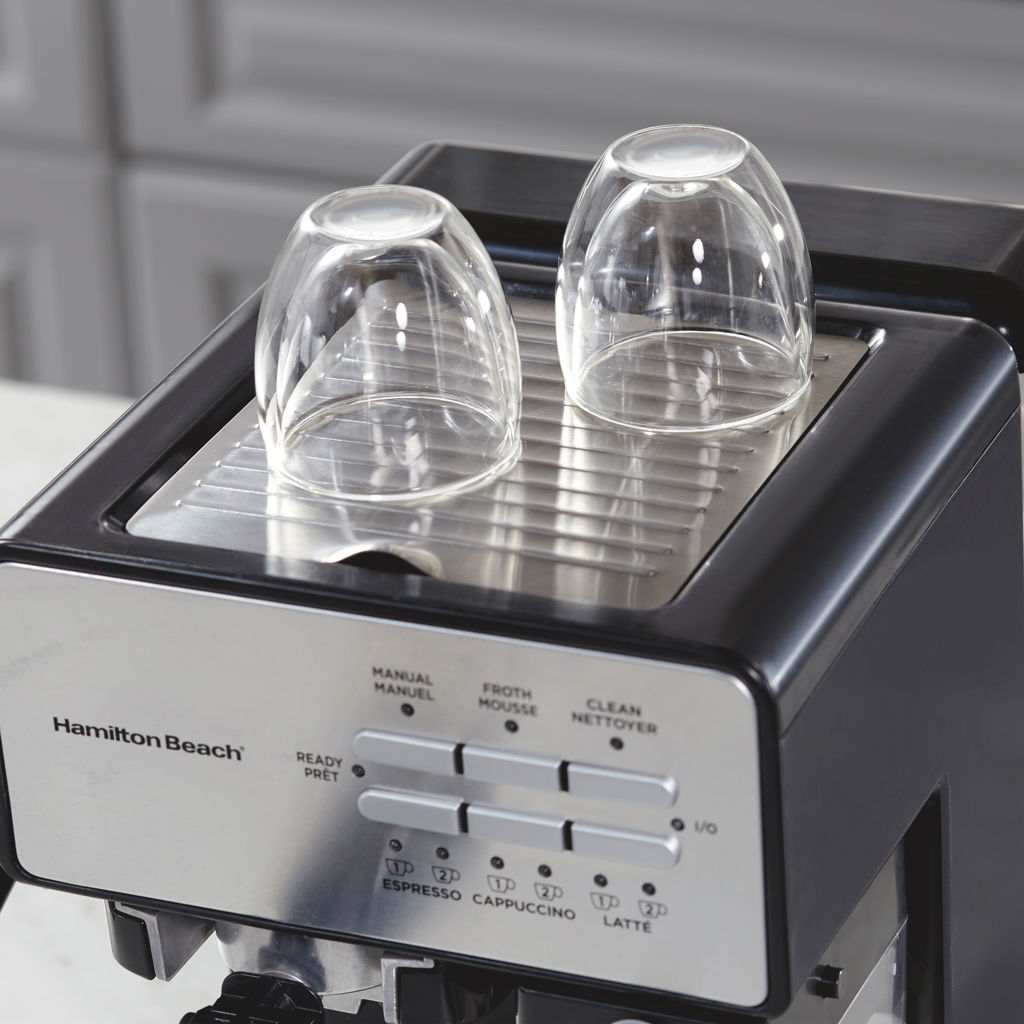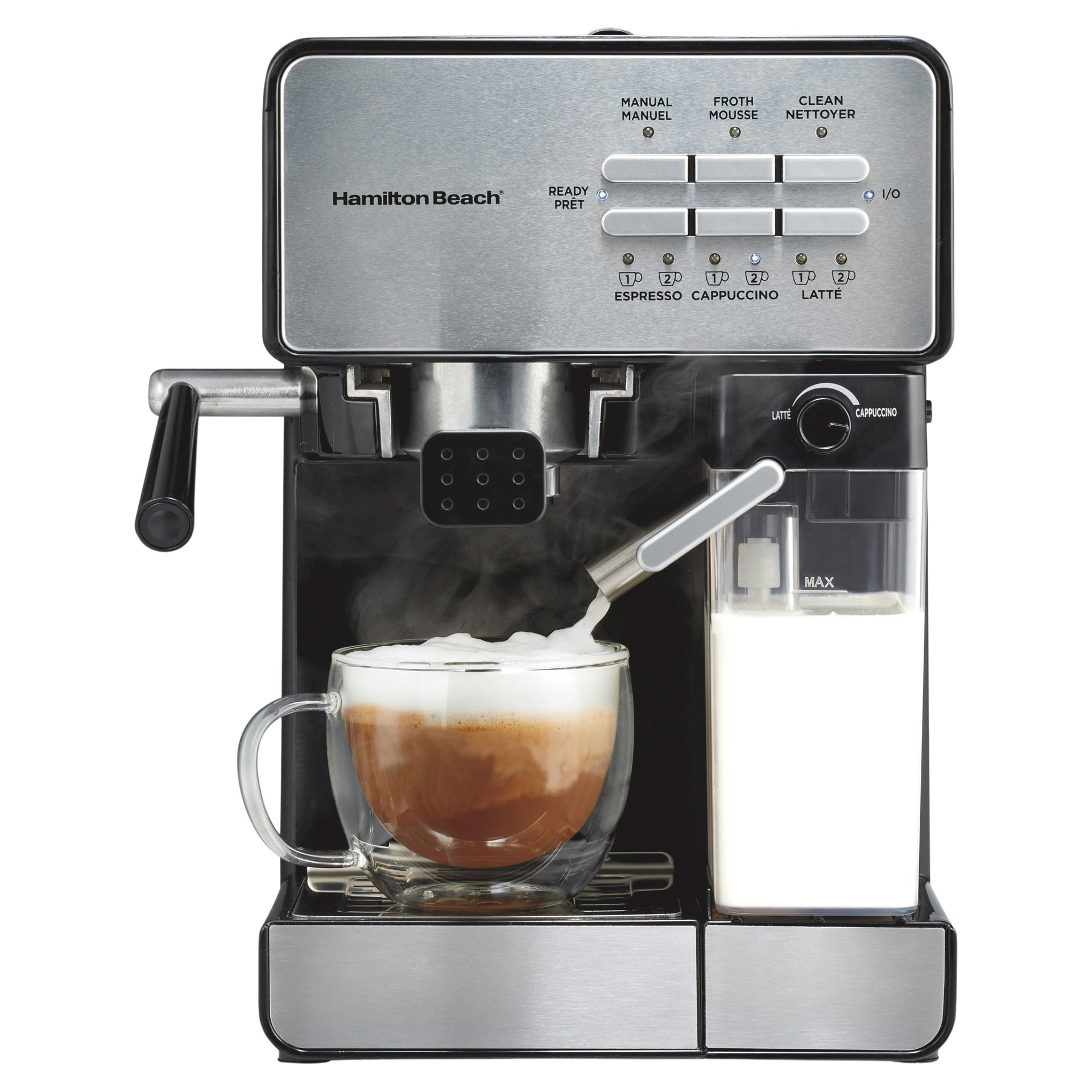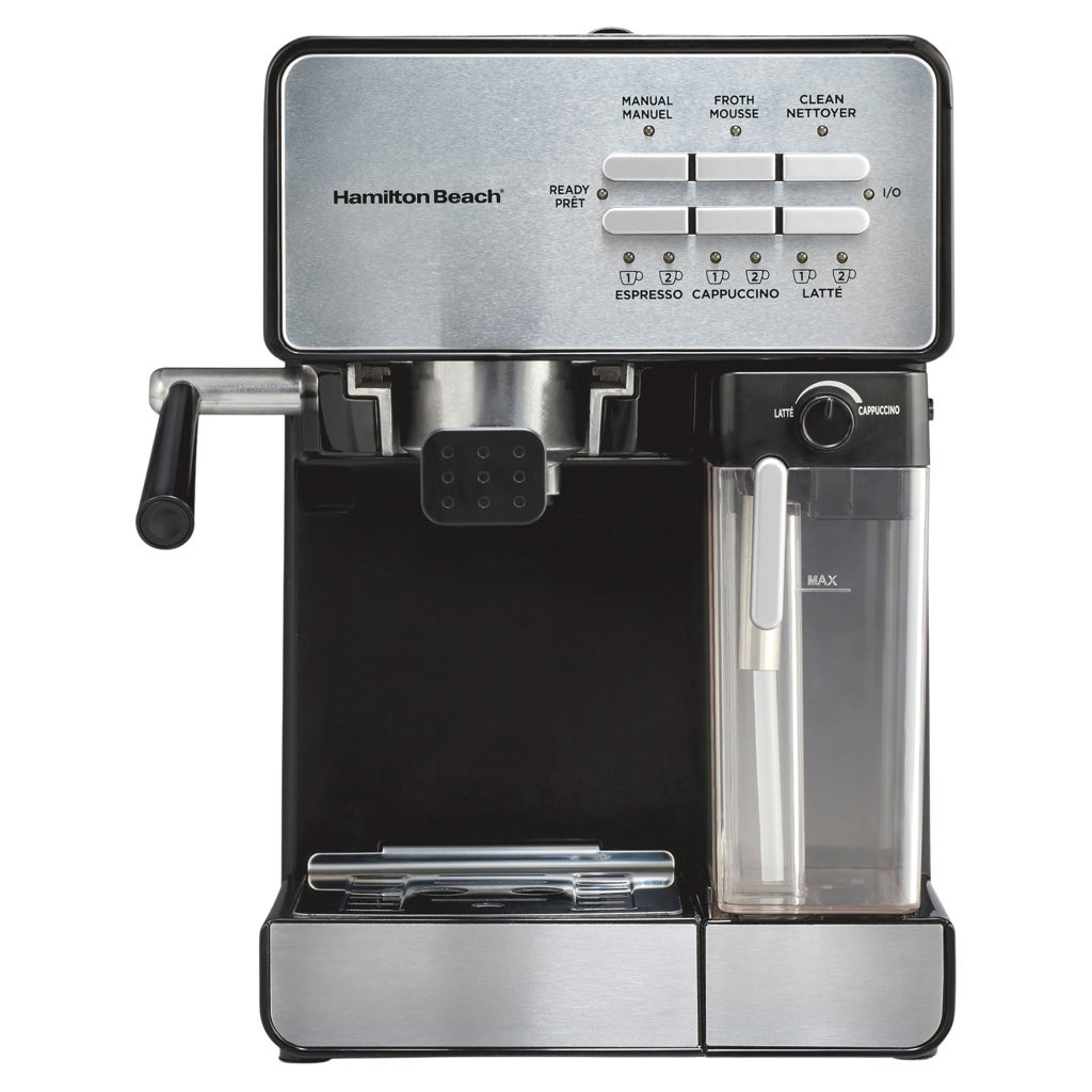 Brew barista-quality espressos, cappuccinos, and lattes, just like your favorite café. The Hamilton Beach® Slide & Lock™ Espresso Machine with Automatic Milk Reservoir makes it easy to prepare all three drinks.