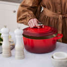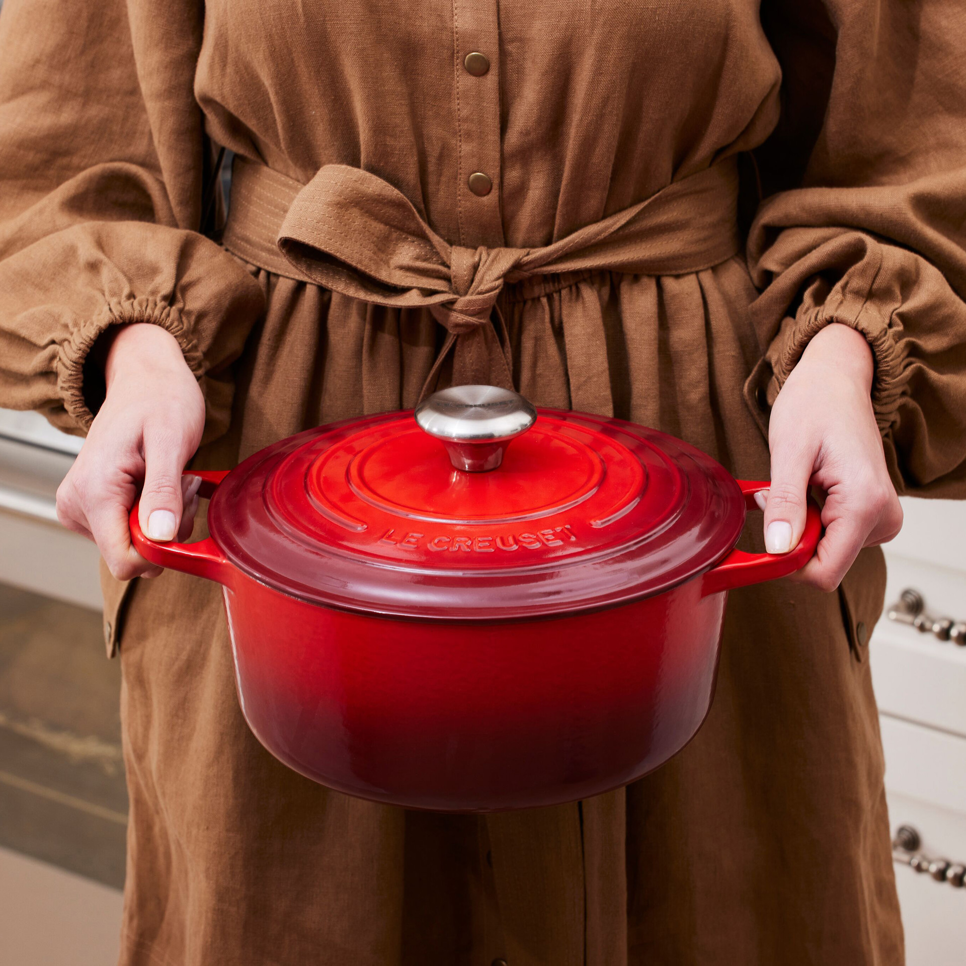 The iconic cookware is beloved for both its chip-resistant enamel exterior, its tight fitting lid and superior heat retention that locks in flavour and keeps food moist and tender.