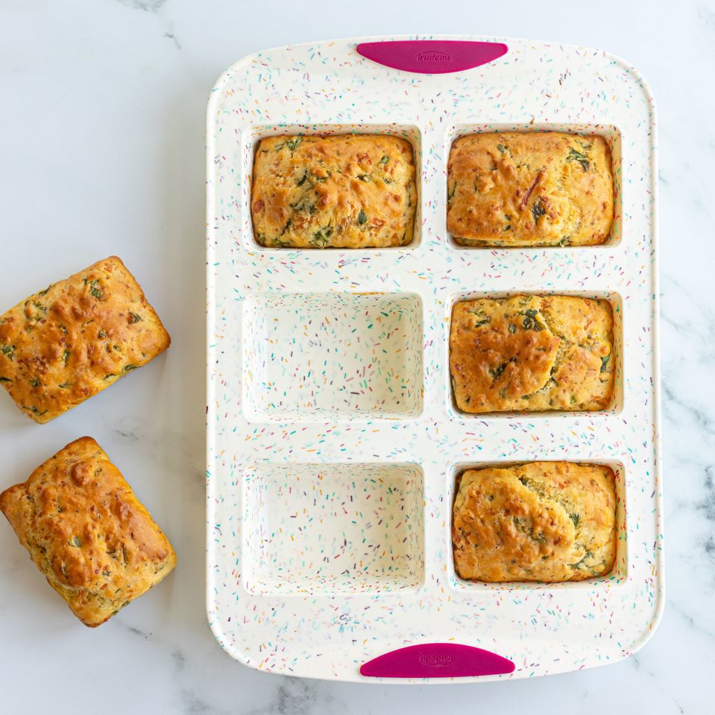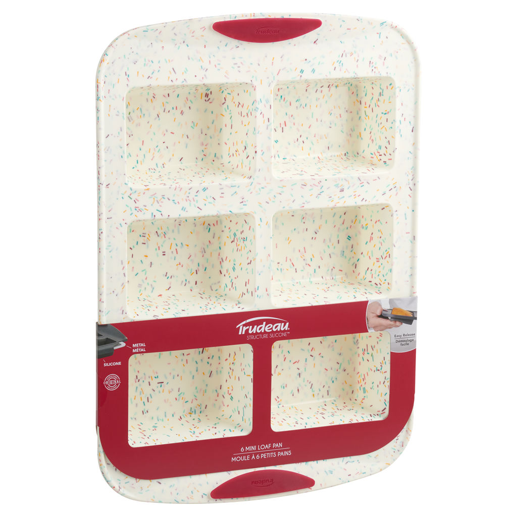 Make the perfect mini loaves with this pretty and colorful Trudeau Confetti Silicone Mini Loaf Pan.