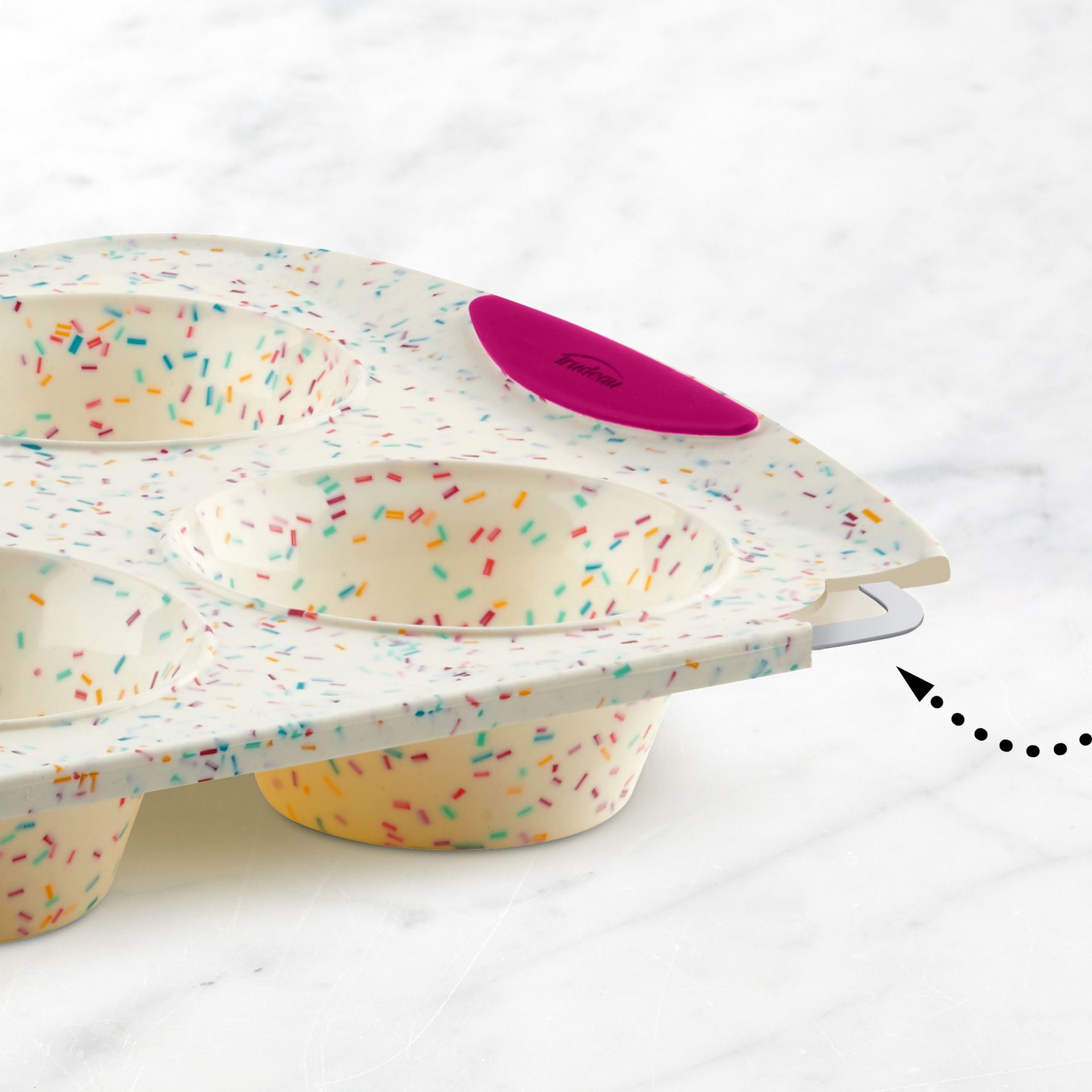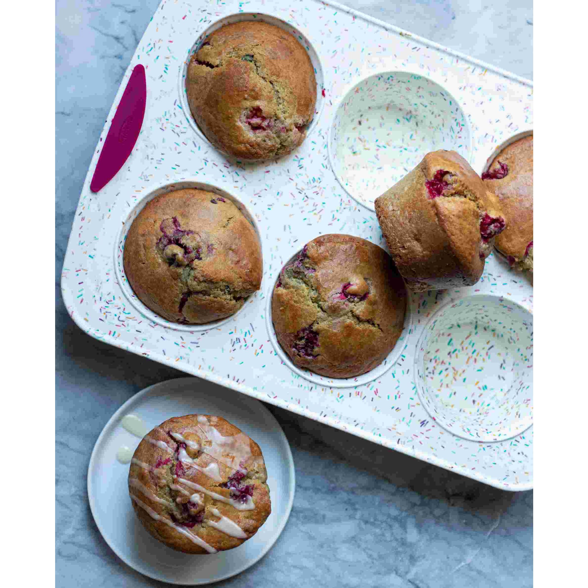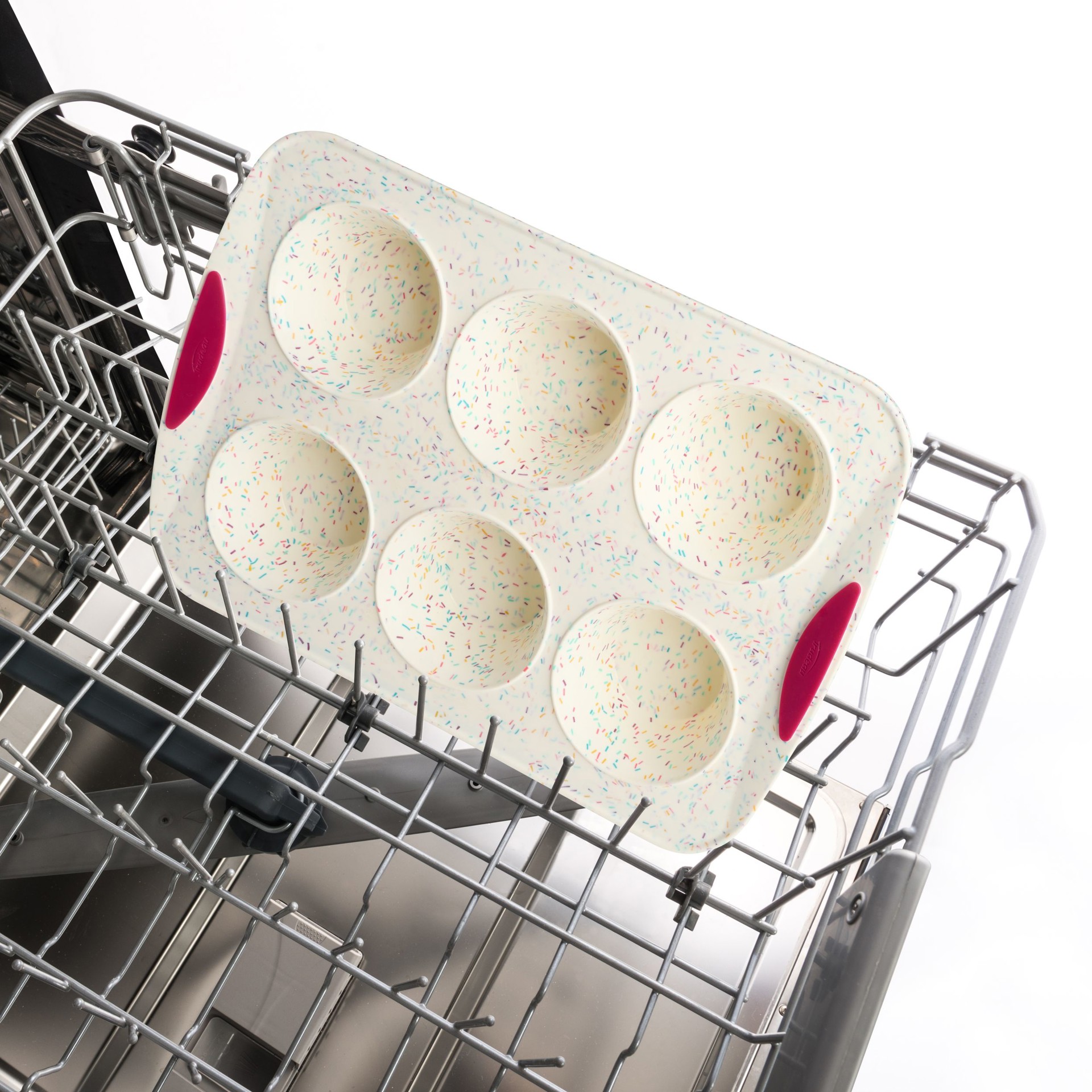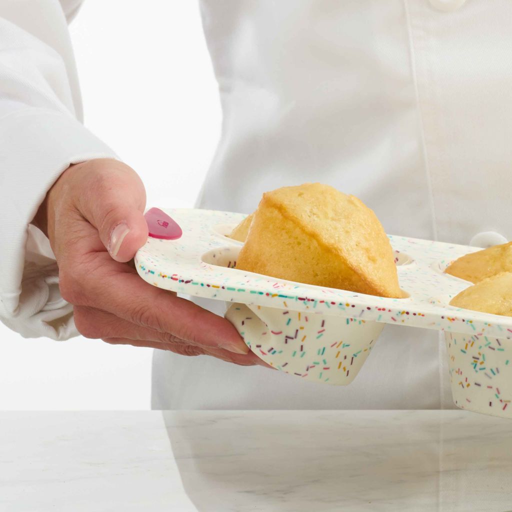 The Confetti Silicone 6-Count Jumbo Muffin Pan is so easy to use: butter, bake, unmould and you're done!