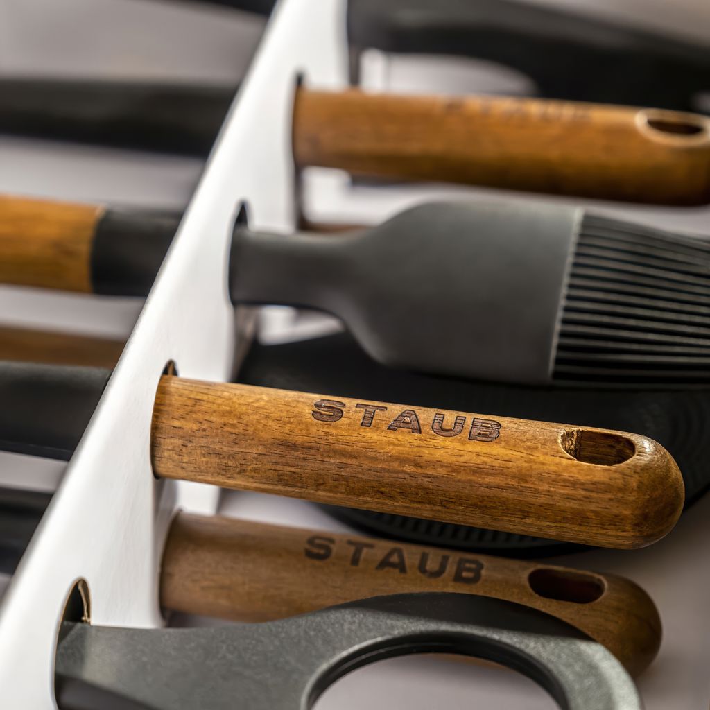 Appreciated by professional and amateur chefs alike, Staub has put its expertise at the service of a new range of kitchen utensils and accessories that complement its cast-iron cookware. Exquisite and ergonomic, Staub tools are perfectly contoured to fit the hand, pan and bowl.