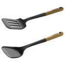 Safe to use on all cookware surfaces, this complete range of cookware is made from durable matte black silicone and eco-friendly acacia wood. This cookware set contains all the basics you need to get started as a home cook, or to enhance your existing cookware.