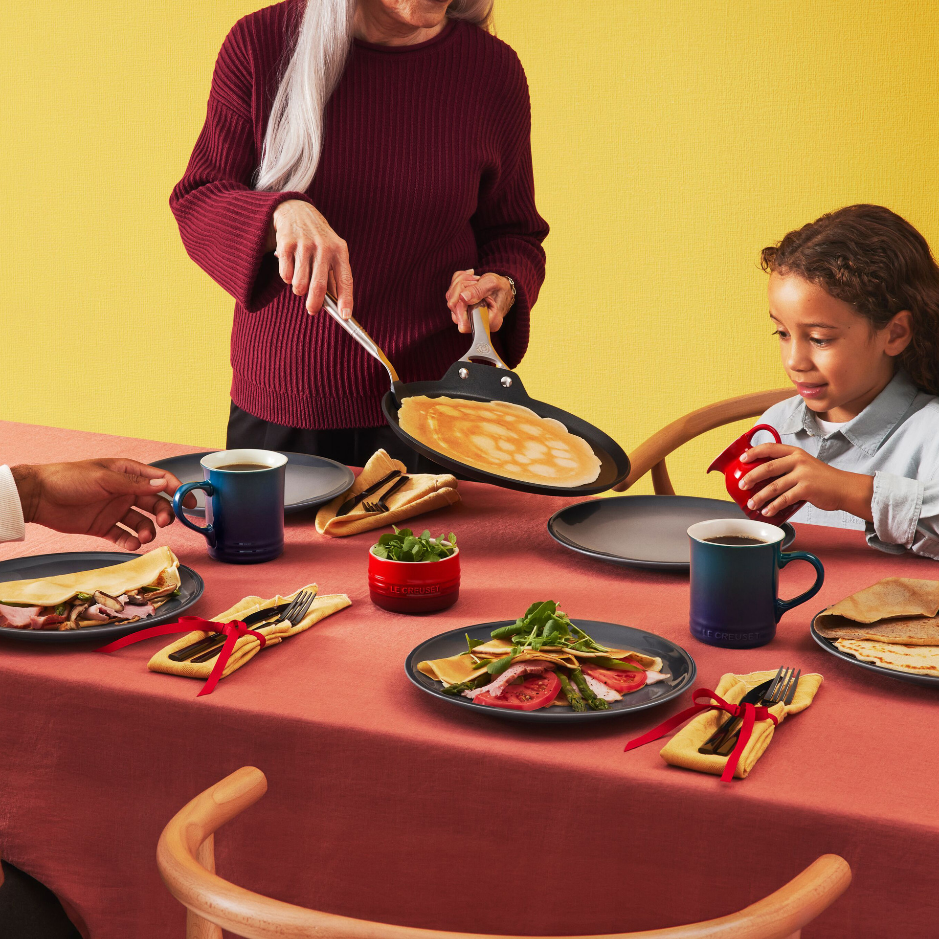 Our Toughened Nonstick Pro Crêpe Pan excels at preparing a wide range of breakfast and brunch recipes. From preparing Crêpe Suzette, to searing salmon to frying a side of eggs, our Toughened Nonstick Pro Crêpe pan is extremely versatile.