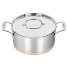 The copper-finished base distributes heat evenly and is induction hob-ready.