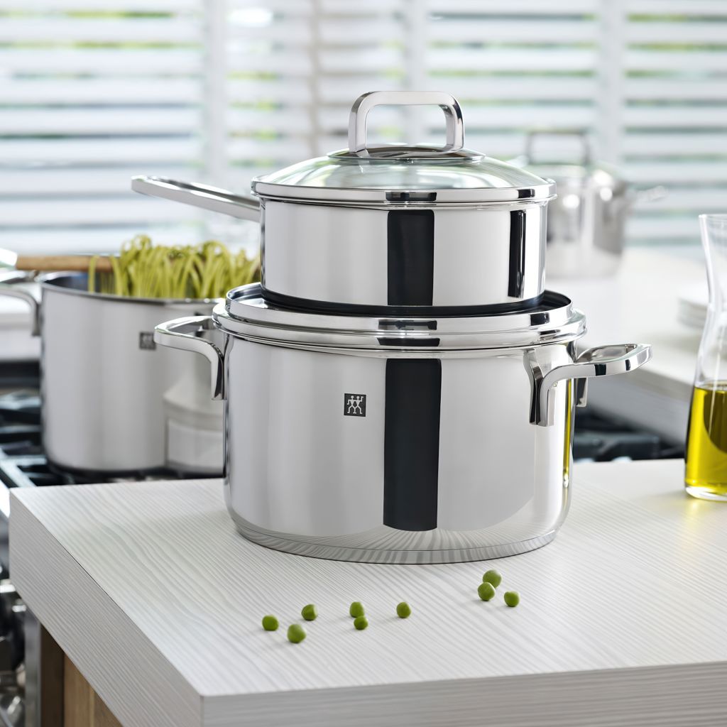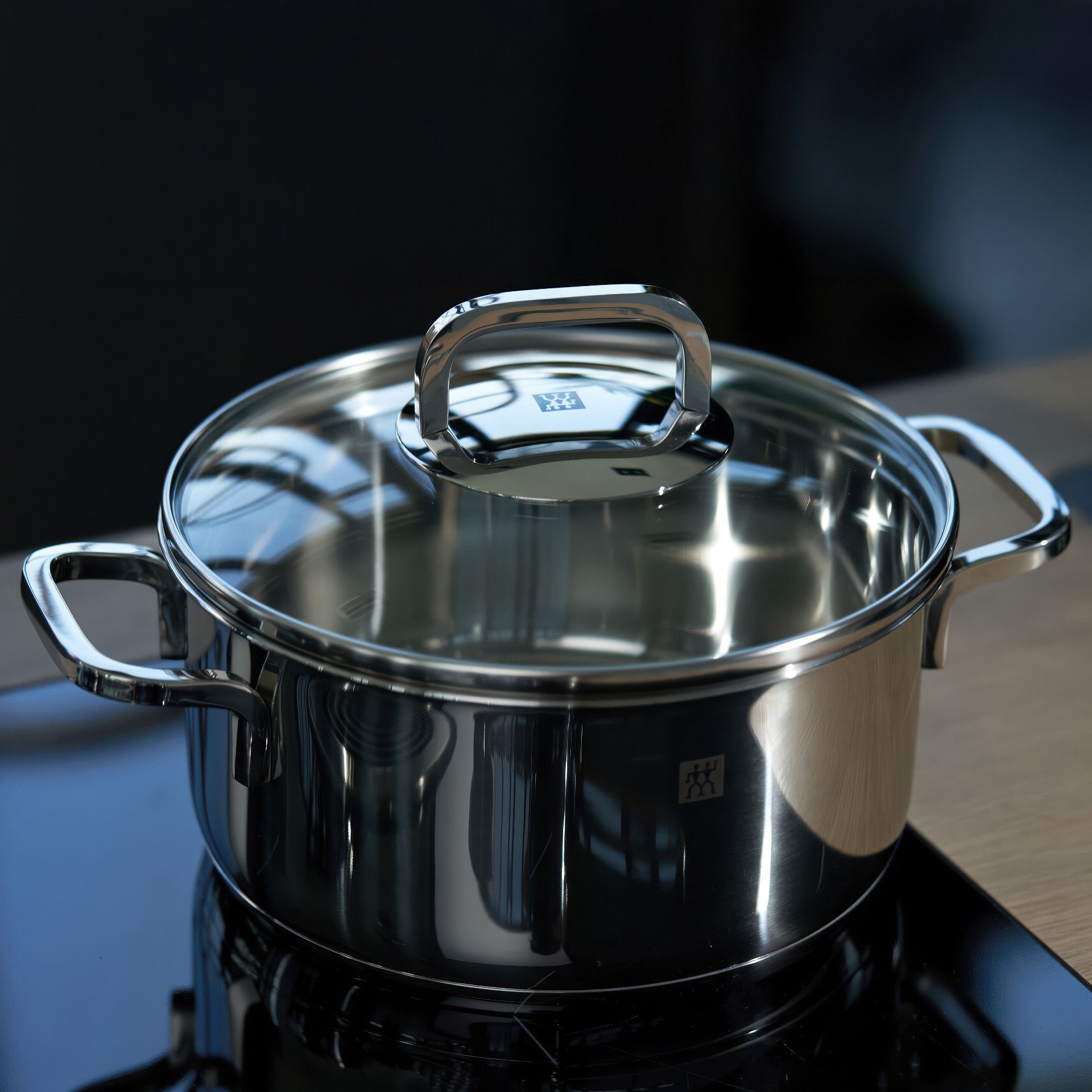 Braising, frying, boiling, stewing. It's all possible with the ZWILLING Quadro pots and pans set made of high-quality stainless steel.