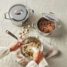 The 7-ply construction delivers unmatched frying power, perfect browning, and exceptional heat distribution and retention. The straight-sided pans feature a 7-ply InductoSeal base with a copper disk for impressive thermal conductivity.