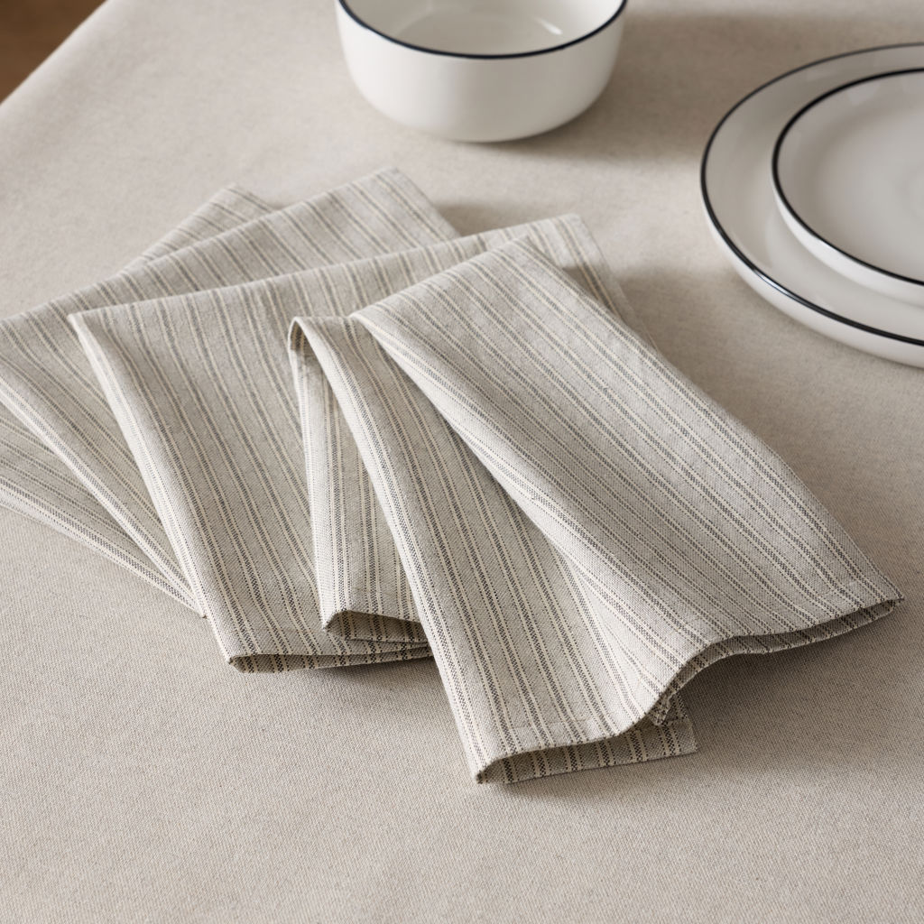 Set of four 18 x 18 in. table napkins, made in Québec in an elegant grey shade accented with a subtle stripe.