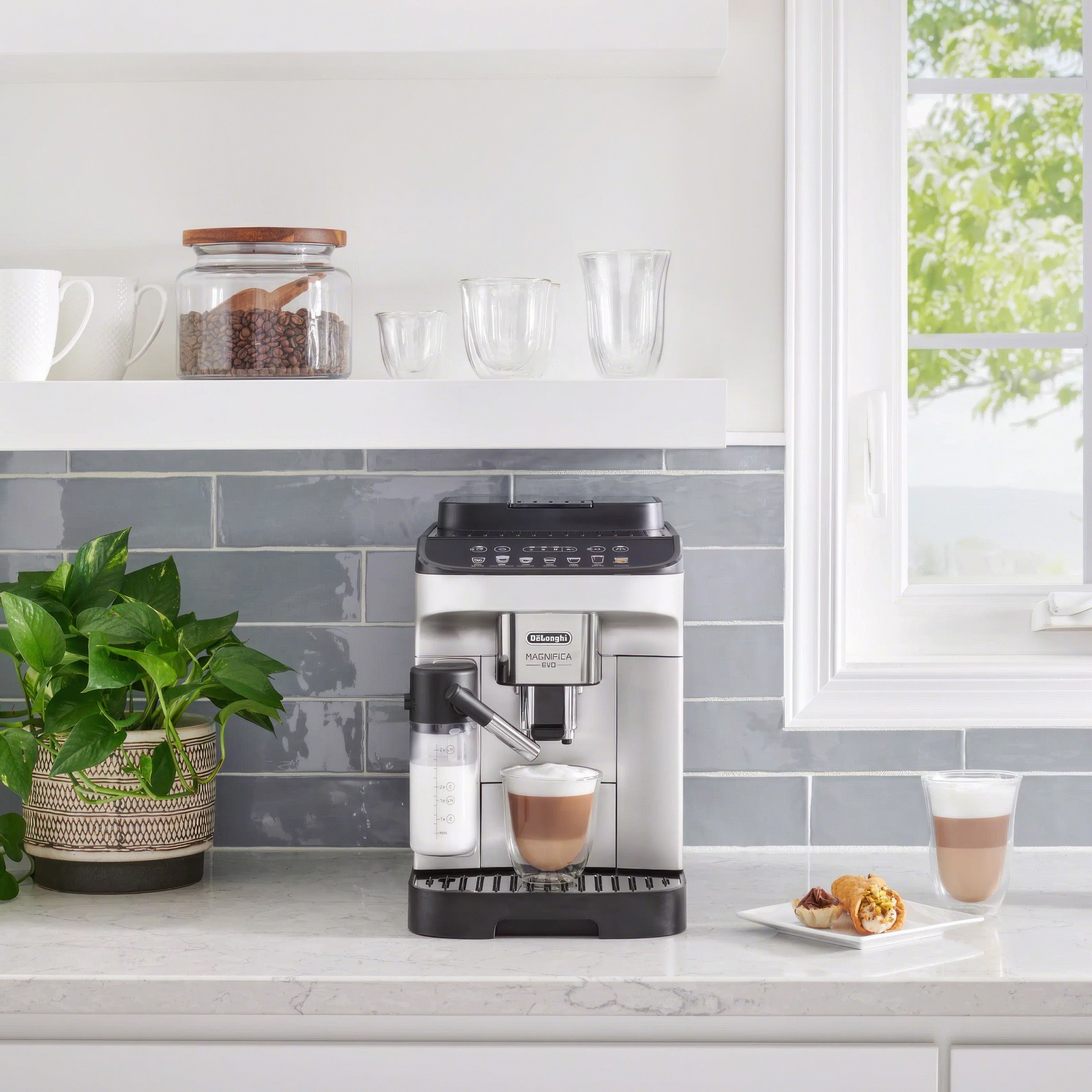 Enjoy your favorite Italian espresso drinks in the comfort of your home with the exceptionally intuitive Magnifica Evo.