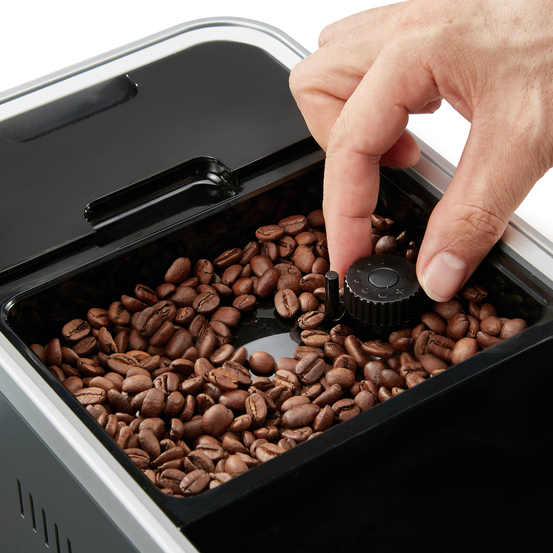 • Built-in low-noise stainless steel burrs coffee grinder