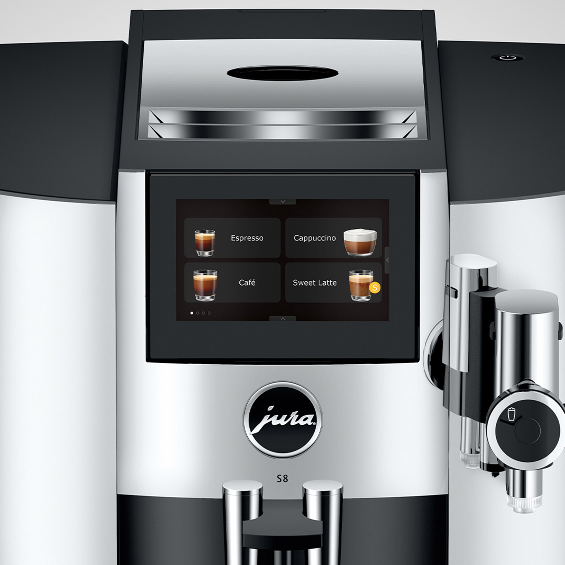 The elegant S8 delights coffee lovers and aesthetic enthusiasts alike. Its sculptural design, noble materials and meticulous finish promise exceptional taste right from the start.