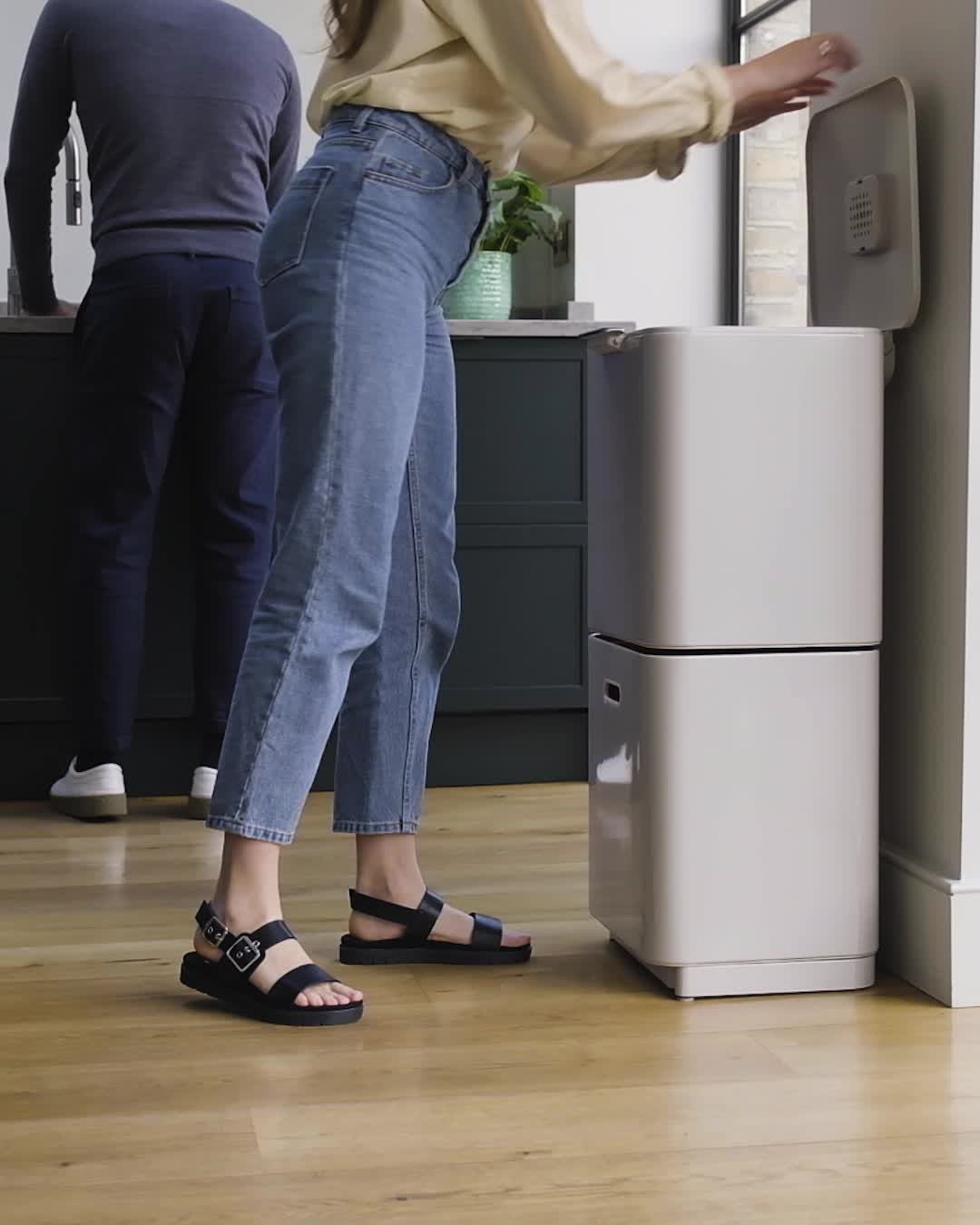 TOTEM, a flexible system that encourages waste separation, without taking up precious kitchen space. TOTEM features a 20-liter general waste compartment, large enough to accommodate waste from even the busiest kitchen. It also features a 20-liter recycling drawer compartment.