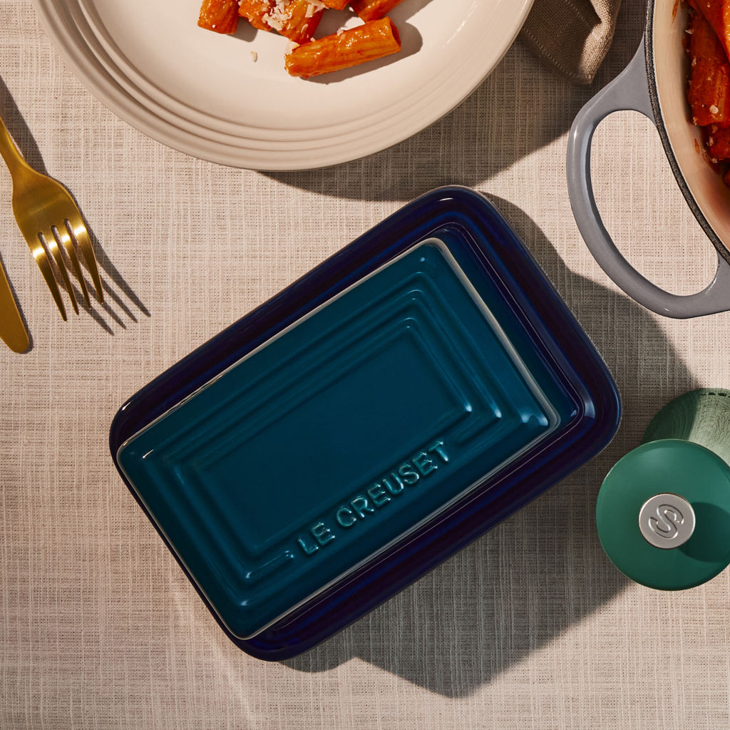 Our Butter Dish holds a standard 454 g block of butter perfectly, making it a great addition to your Le Creuset collection. Decorative yet functional, it is great for going from the refrigerator to the microwave and table with ease.