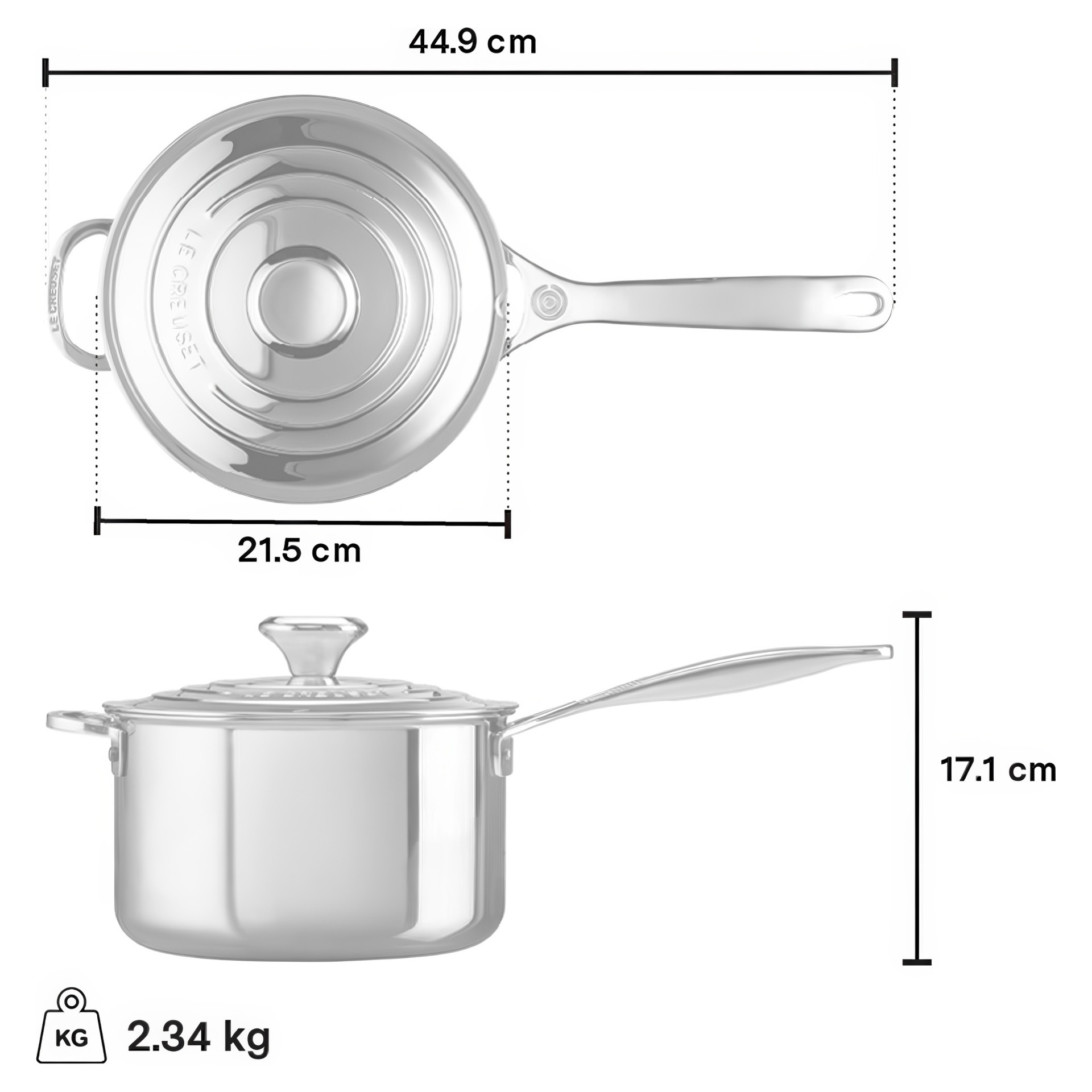 The Stainless Steel Saucepan is perfectly designed for reducing sauces, cooking grains or blanching veggies. Its compact size and interior capacity markings offer home cooks and chefs alike the ability to easily monitor their recipes as they simmer.