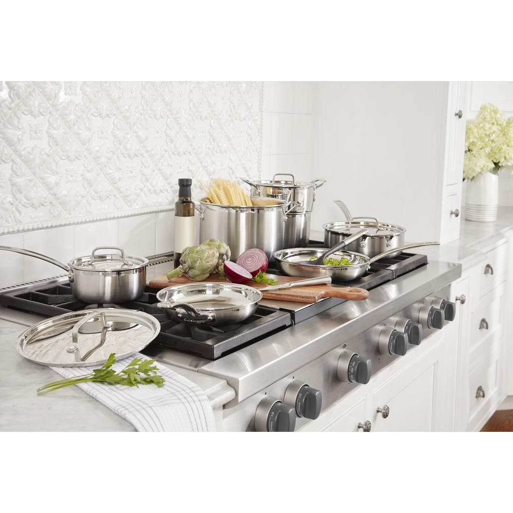The triple-ply stainless-steel construction ensures optimal heat conductivity. This cookware set is ideal for classic cooking techniques such as gentle simmering, rapid boiling, and liquid reduction.