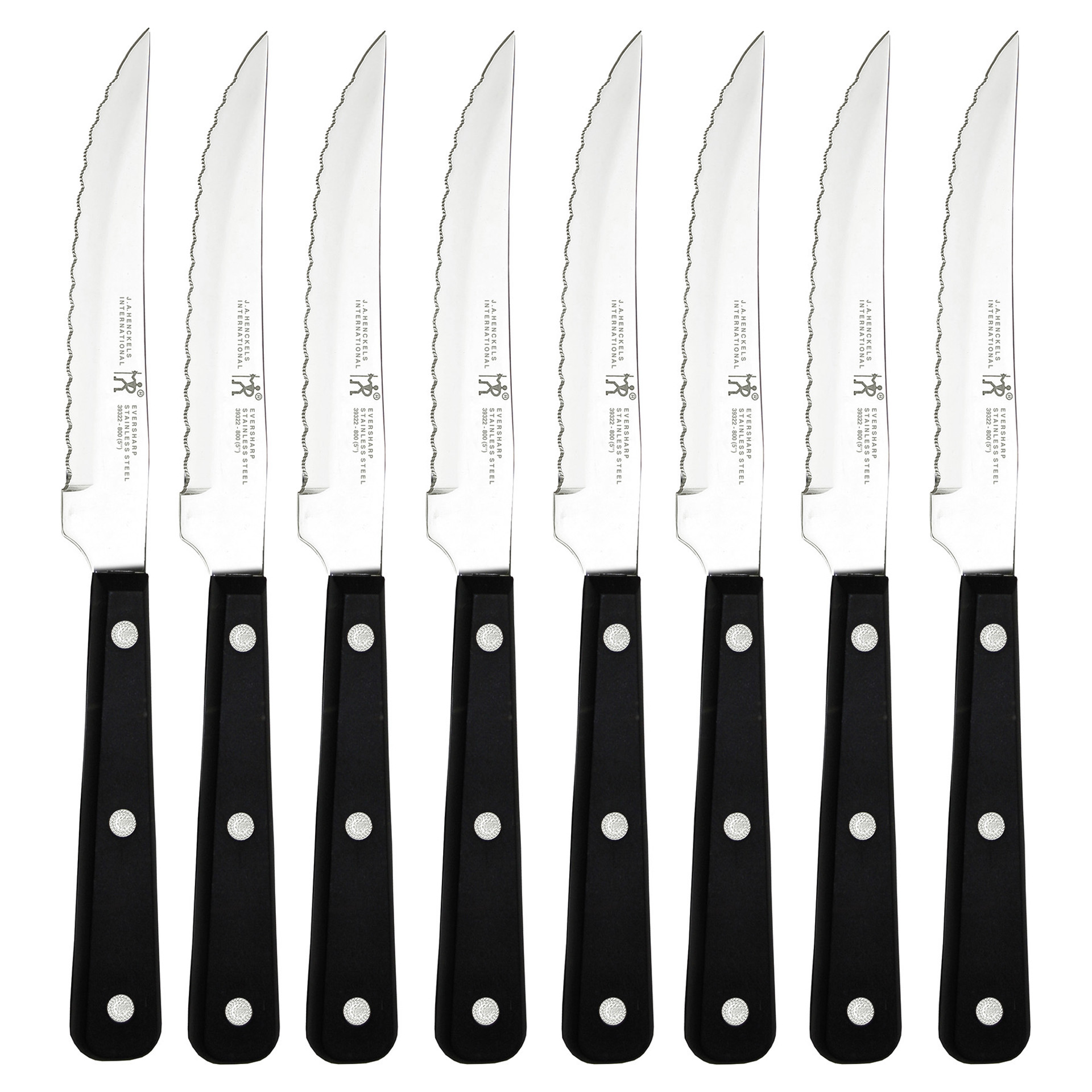 The Henckels steak knives feature large serrations, each with smaller micro-serrations that help ensure they stay sharp over time.