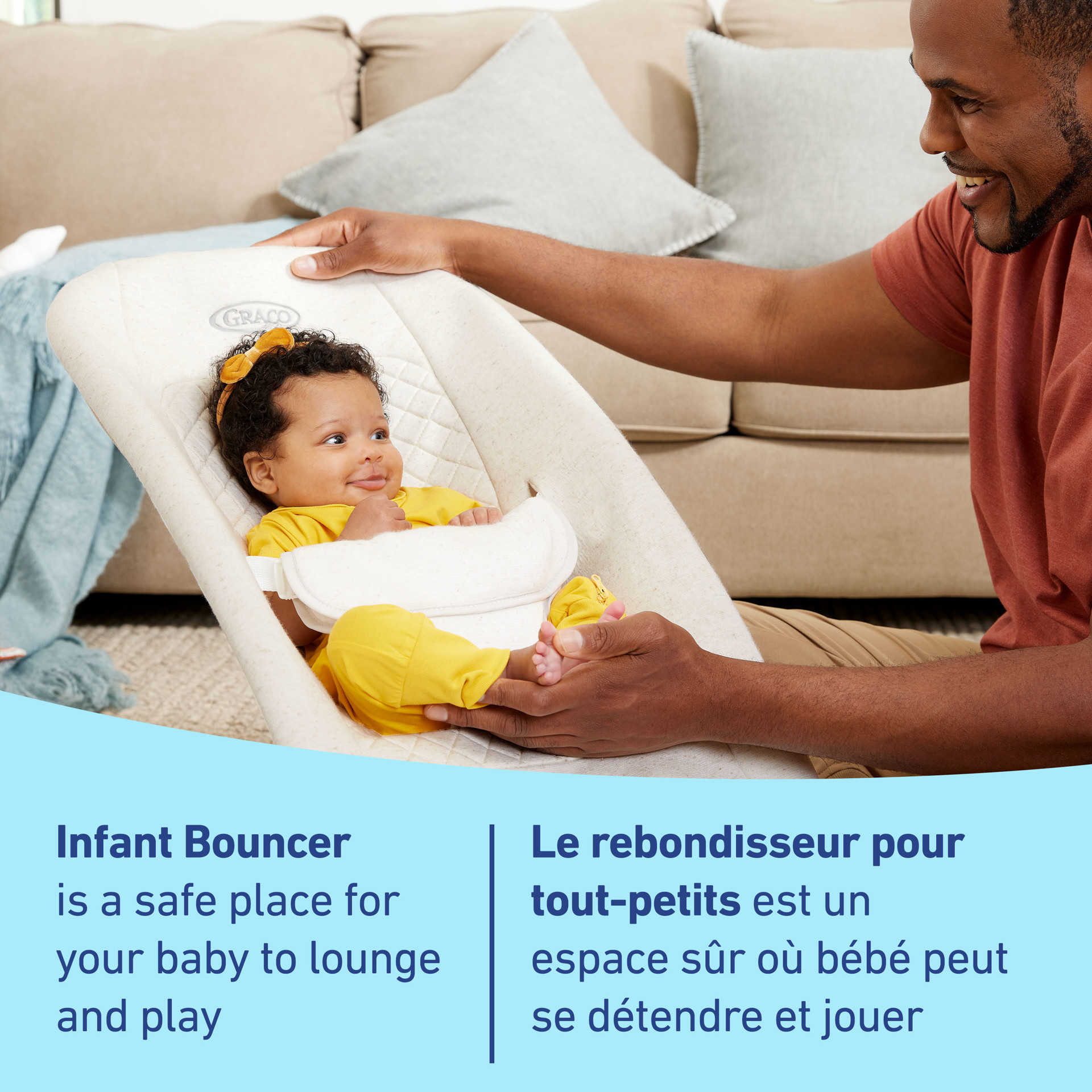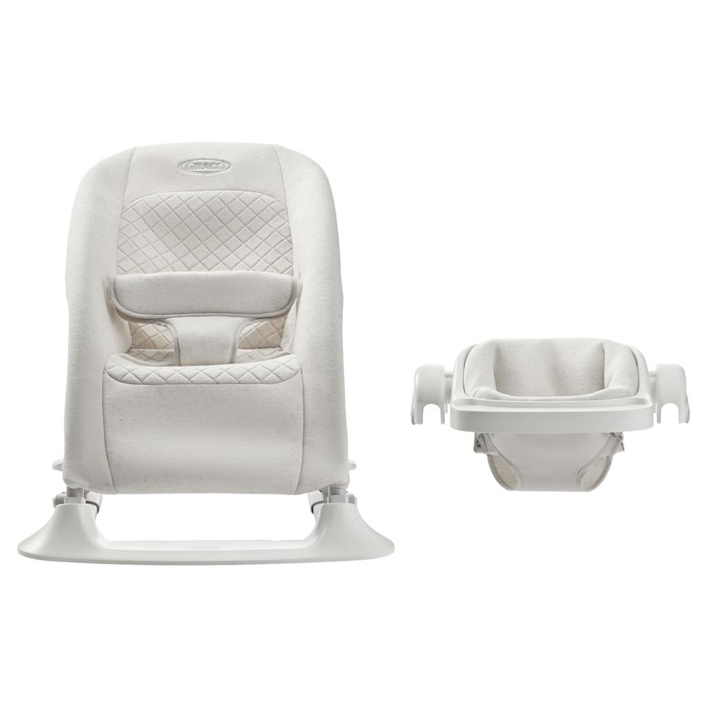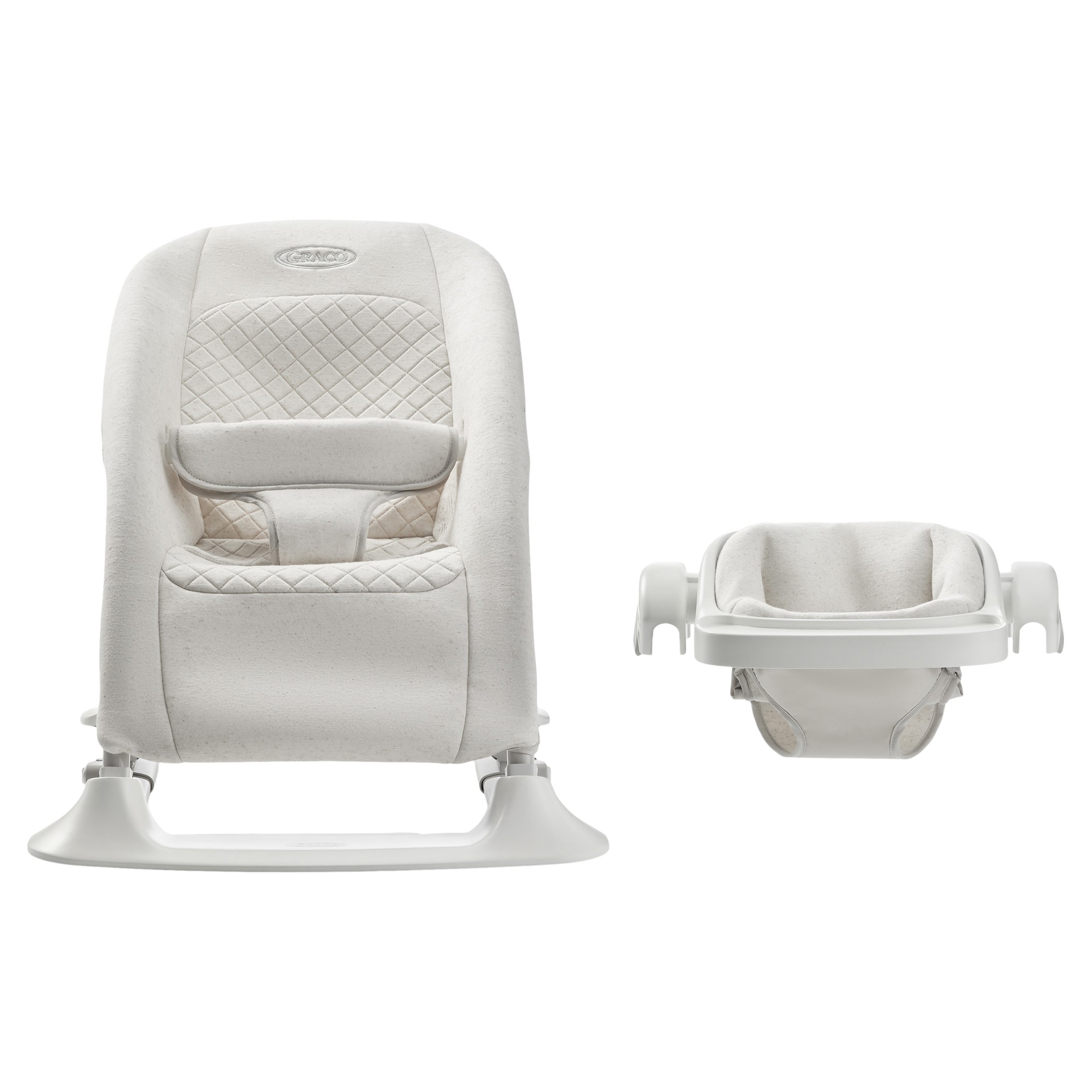 Then transform the bouncer into a floor seat as your little one learns to sit up. A small tray can be attached for snacks, a cup or extra space to play with their favorite toys.