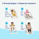 The final stage is a toddler chair, supporting up to 18 kg (40 lb), so older children have their own seat to explore books or enjoy a snack.
