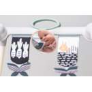 • Side 2 - 2m+ Colorful illustrations with rattle and beet teether. Colorful side of soft panel for baby’s senses development Gross motor, cause & effect & mouthing.
