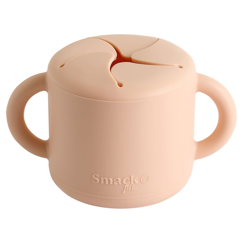 The snack cup is designed with two small handles to make it easy for little hands to hold, while the fun Snack is waterproof and can be taken along by baby on the move.