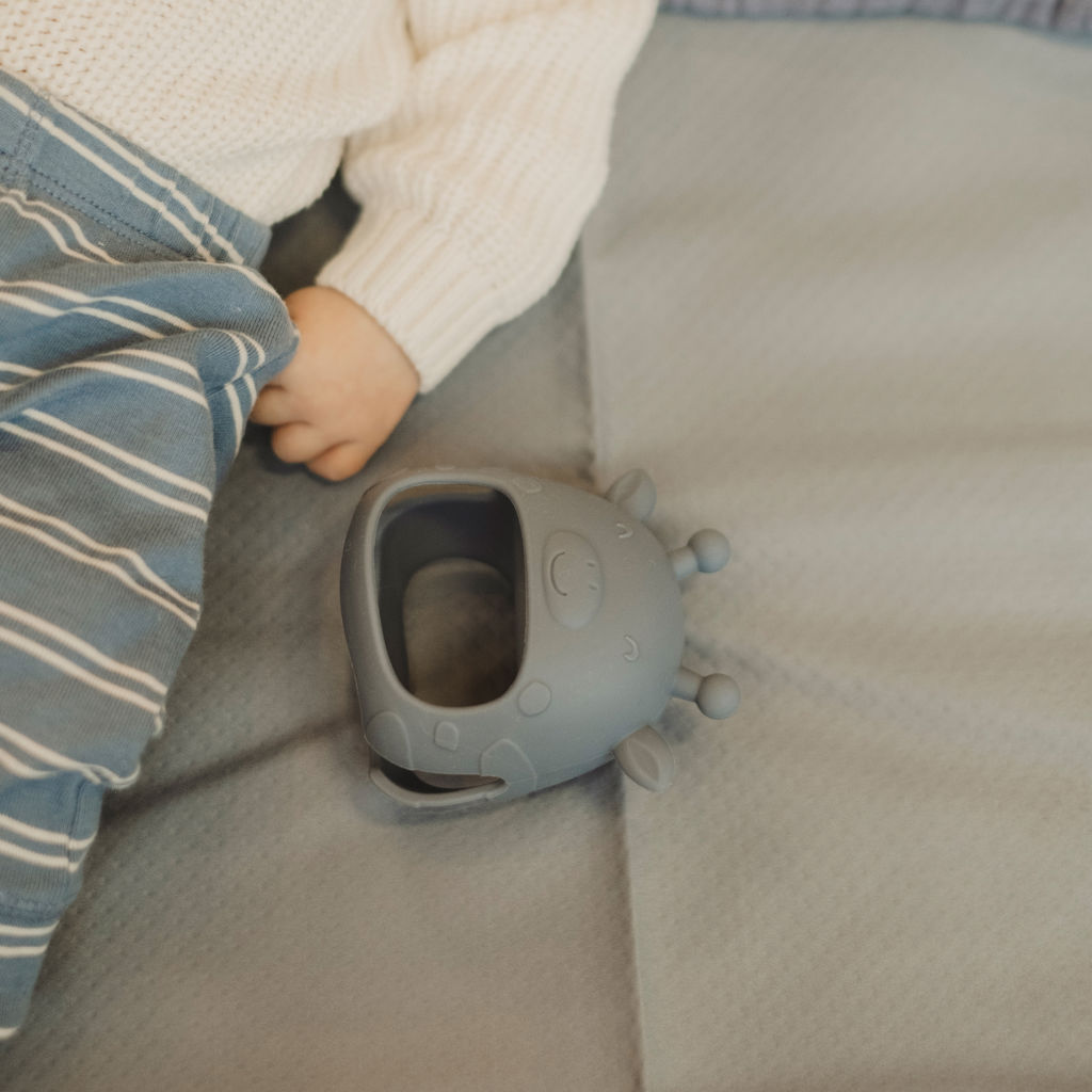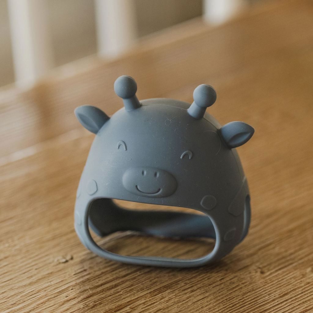 Designed to fit baby's hand, this giraffe-shaped teething mitten provides comfort and immediate relief during teething. With its raised nubs, it gently massages sensitive gums, soothing pain while providing an ideal surface for chewing.