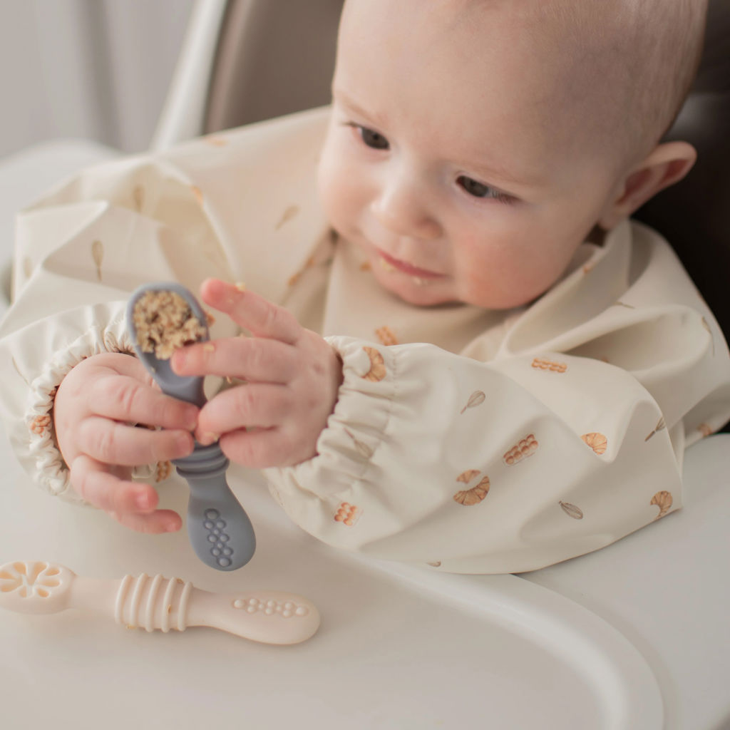 Make it easier for your baby to feed independently with this set of 2 BPA-free silicone spoons, perfect for toddlers from 6 months. Designed to fit small hands and first teeth, they promote hand-mouth coordination while ensuring a safe and enjoyable experience.