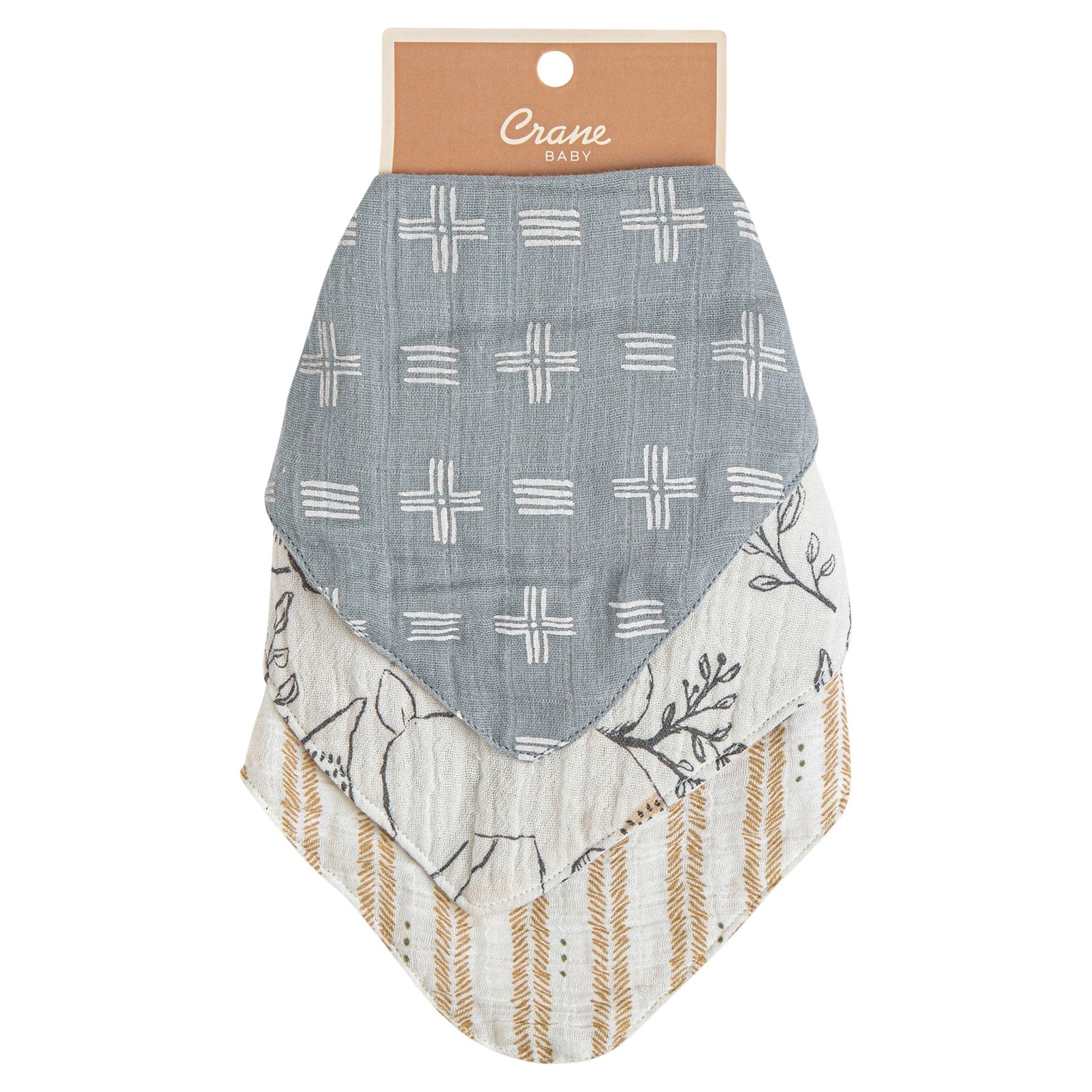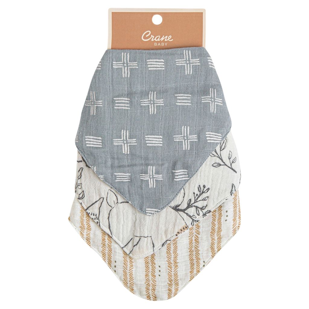 Ezra Muslin Bib (Set of 3) Crane C110BS