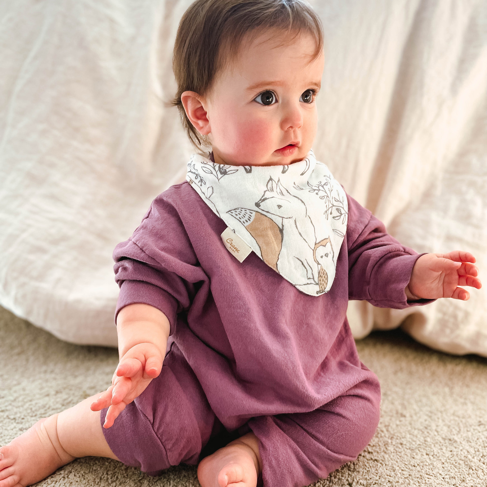Perfect for a full day of play or a sunny afternoon nap. Lightweight and absorbent, these bibs are made from four layers of 100% cotton muslin and are ideal for complementing your baby’s outfit.