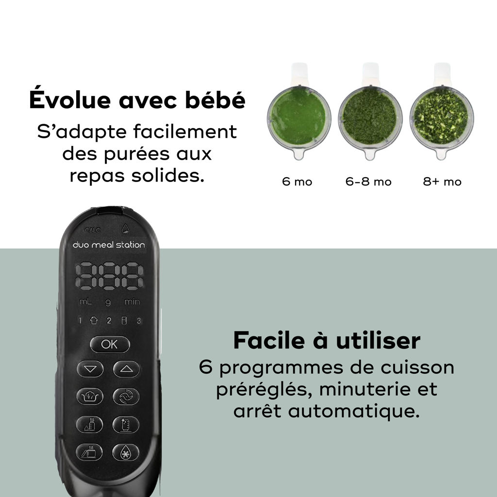 The Duo Meal Station XL is a 6-in-1 multifunction food processor designed to support you at every stage of your child’s development, from pregnancy to weaning and beyond.