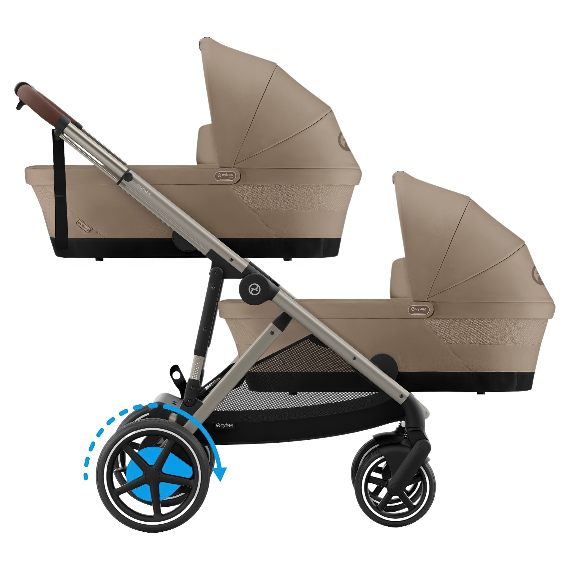 As your family grows, convert the CYBEX Gazelle S from a single to a double stroller with the Cybex Gazelle S 2 cot, allowing a baby and toddler to ride at the same time.
