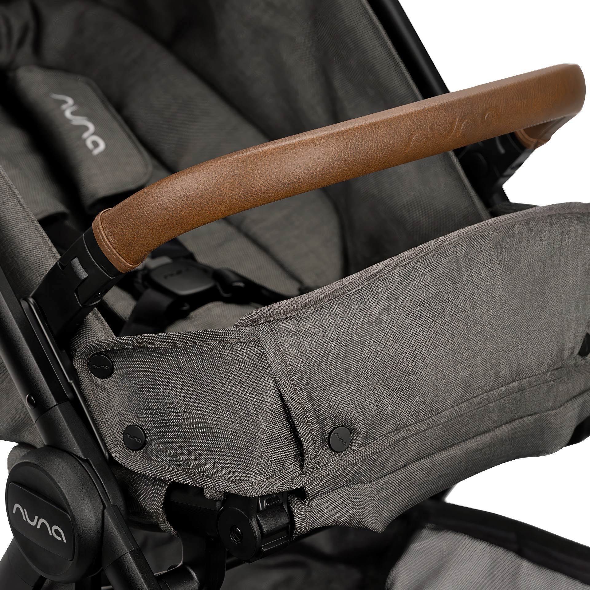 • Leatherette-covered handle and grab bar for elegant walks. Removable, swiveling grab bar suitable for children of all sizes, from birth to 22.7 kg (50 lb).