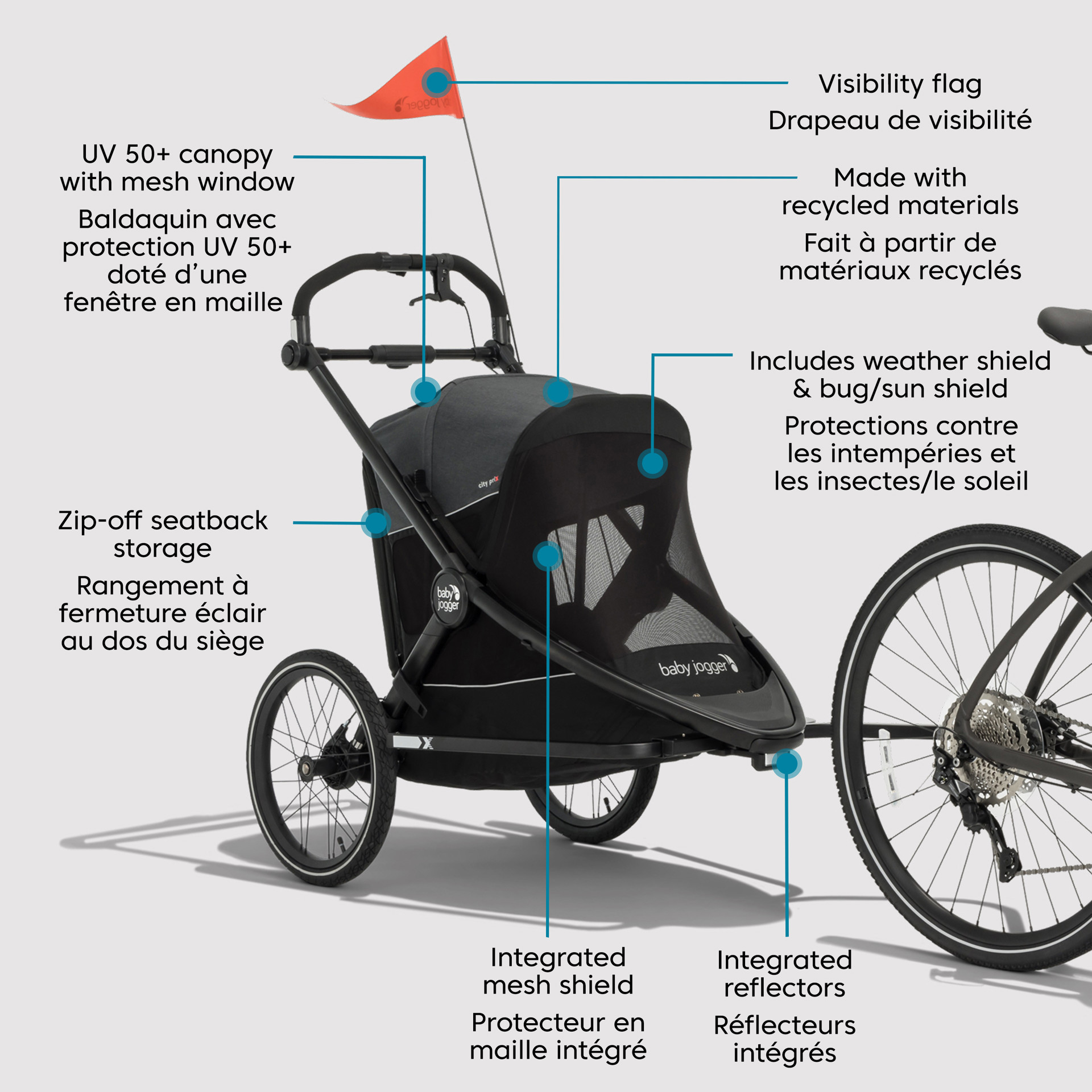 It's all you need to take your child with you on your daily jog, and you can easily upgrade to an aerodynamic bike trailer to tow your little one.