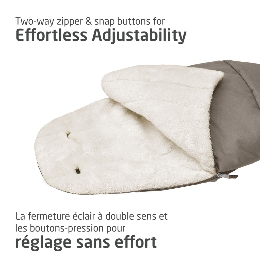 The water-resistant exterior and dirt-resistant panel help shield your little one and your stroller from the elements, while the two-way zipper and snap buttons make it easy to adjust for changing weather.