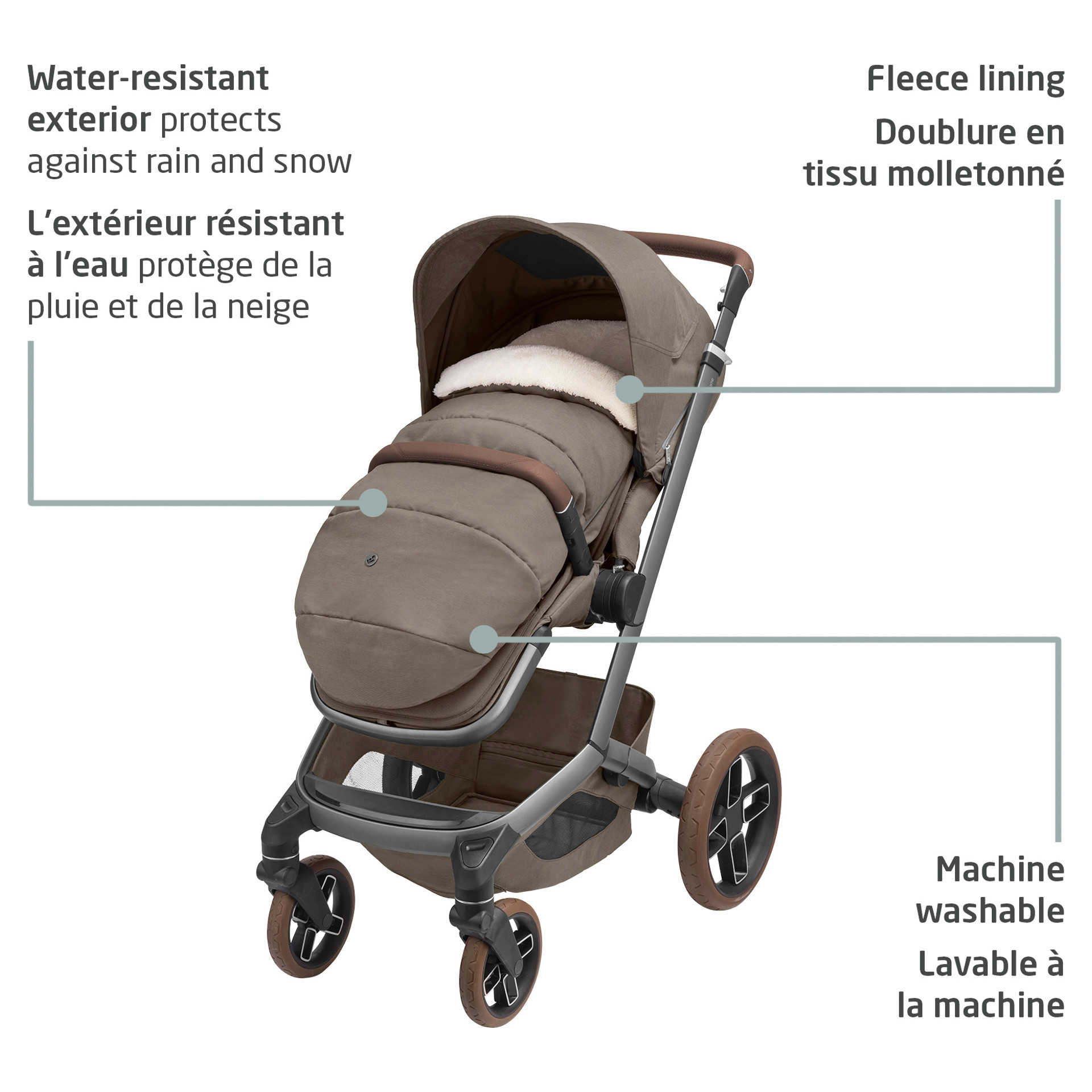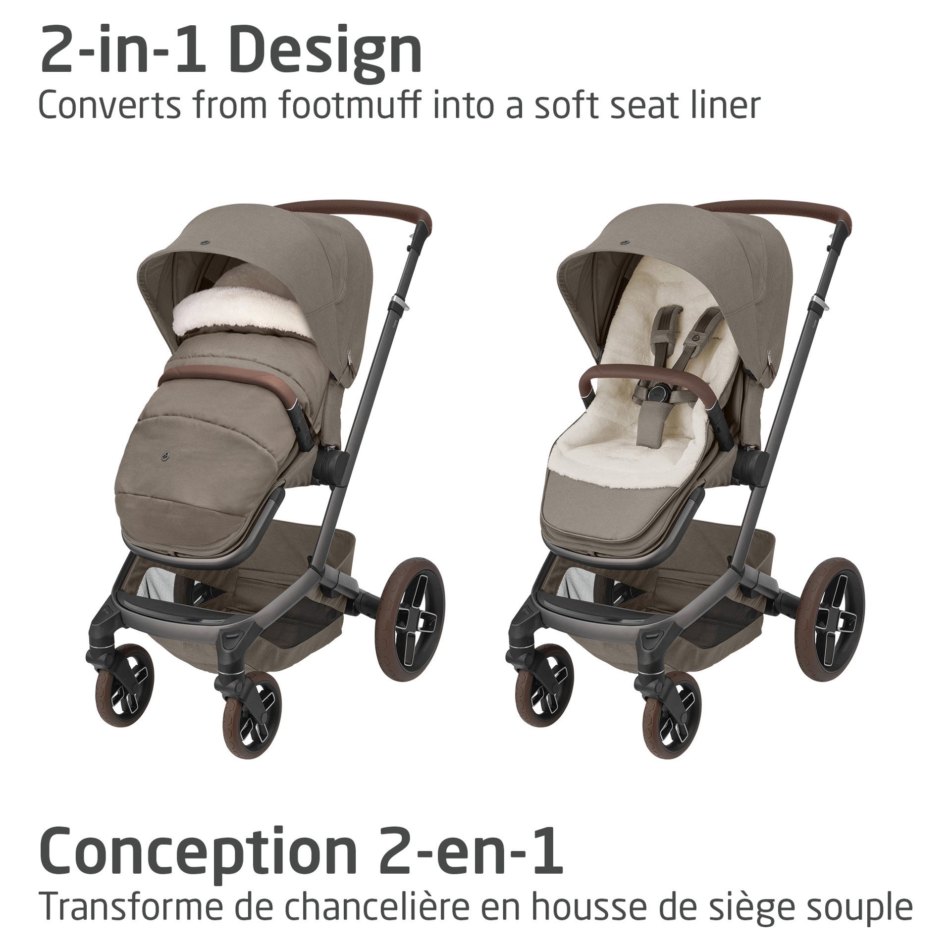 Cold, wind, rain, or snowthe Maxi-Cosi 2-in-1 Footmuff keeps your baby warm and protected through it all.