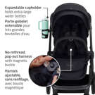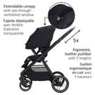 The extendable, ventilated canopy offers maximum shade and breathability, while the ergonomic vegan-leather carry handle rests comfortably at your hip for added style and ease on the go.