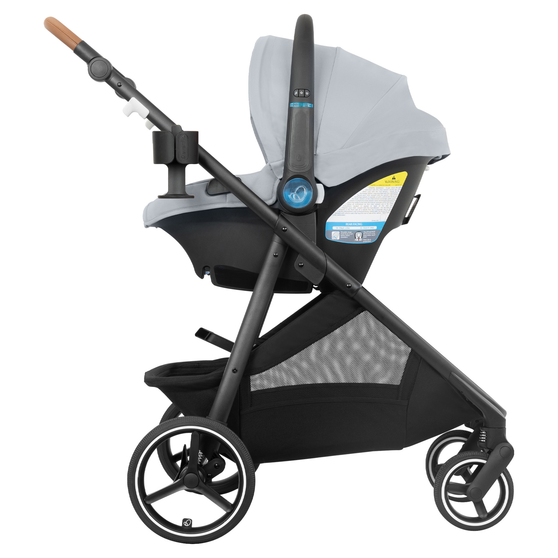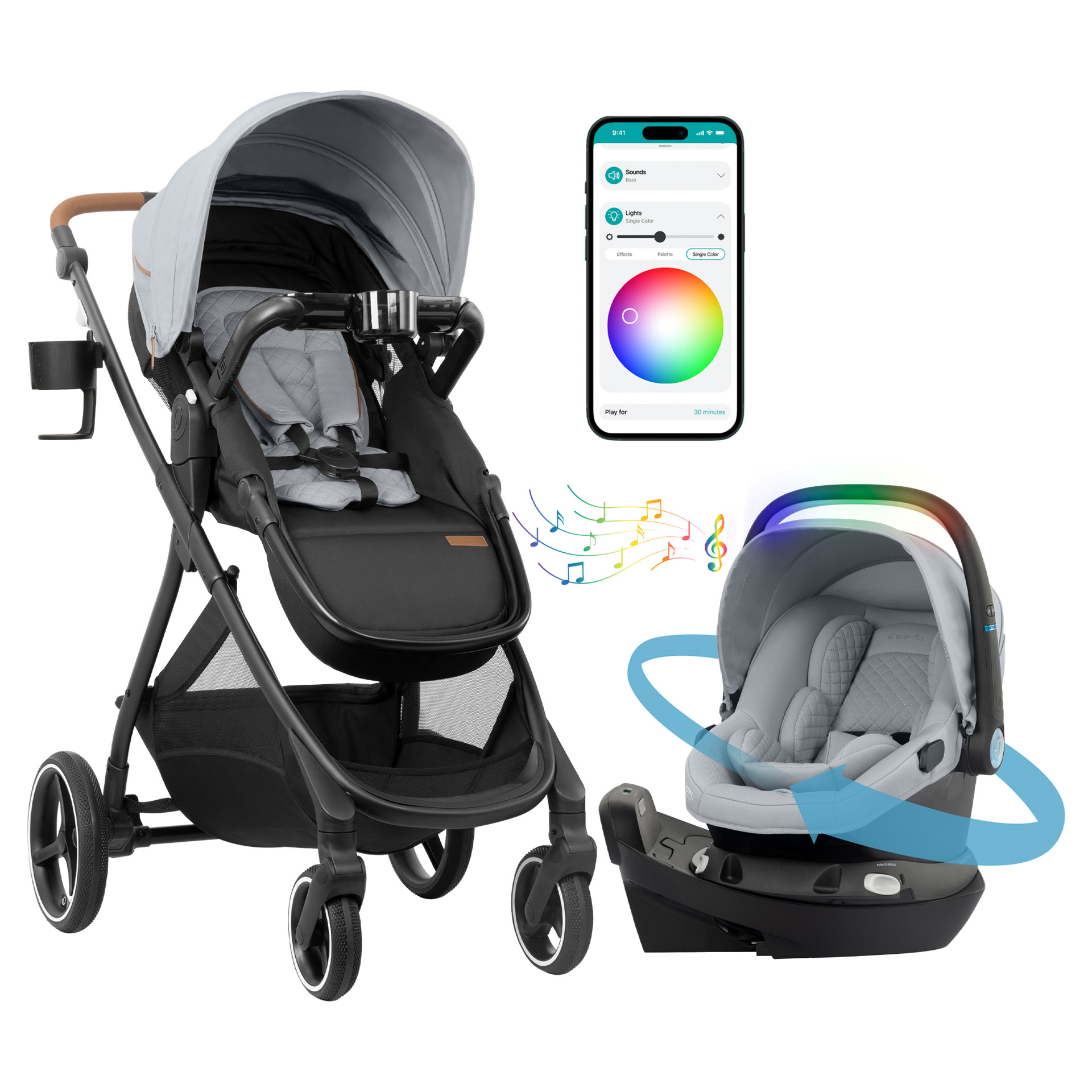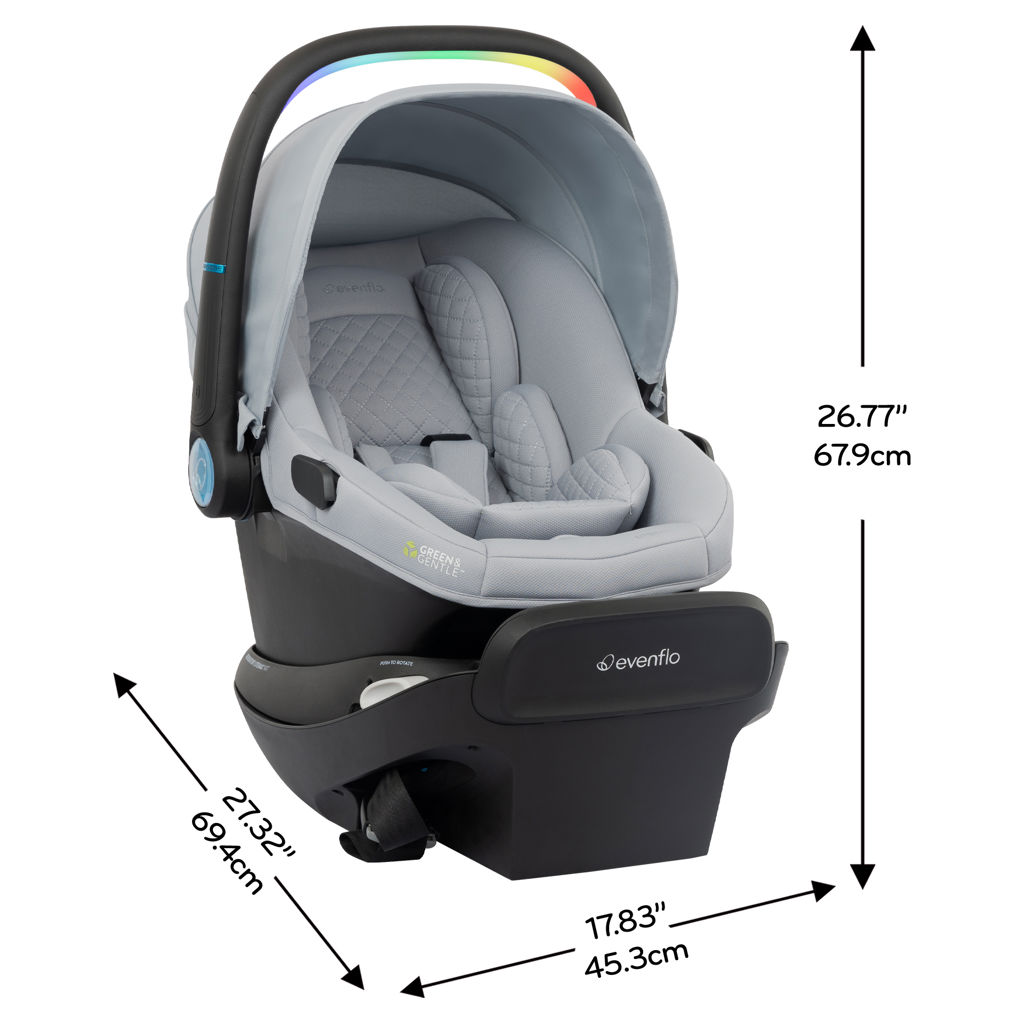 Built into the handle of the Revolve180 LiteMax NXT, the one-of-a-kind SensorySoothe™ technology stimulates and soothes your baby with lights, music, and sounds. Start a mesmerizing light show right from the Evenflo app on your phone!