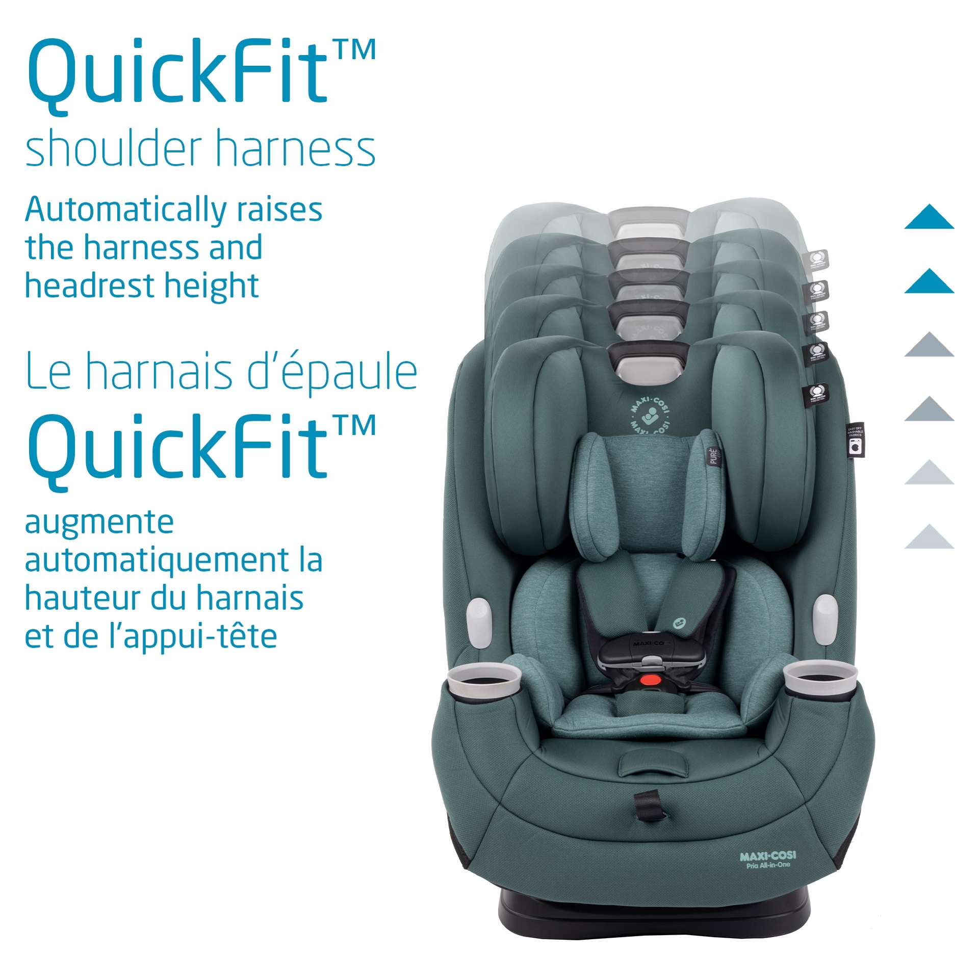 The QuickFit shoulder harness automatically raises the height of the harness and headrest to adapt to your growing child. It's important to have the flexibility to customize your car seat to ensure you keep safety where you need it.