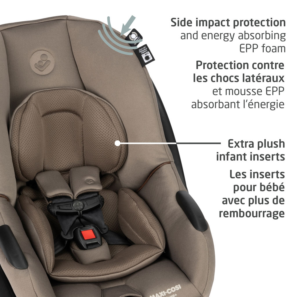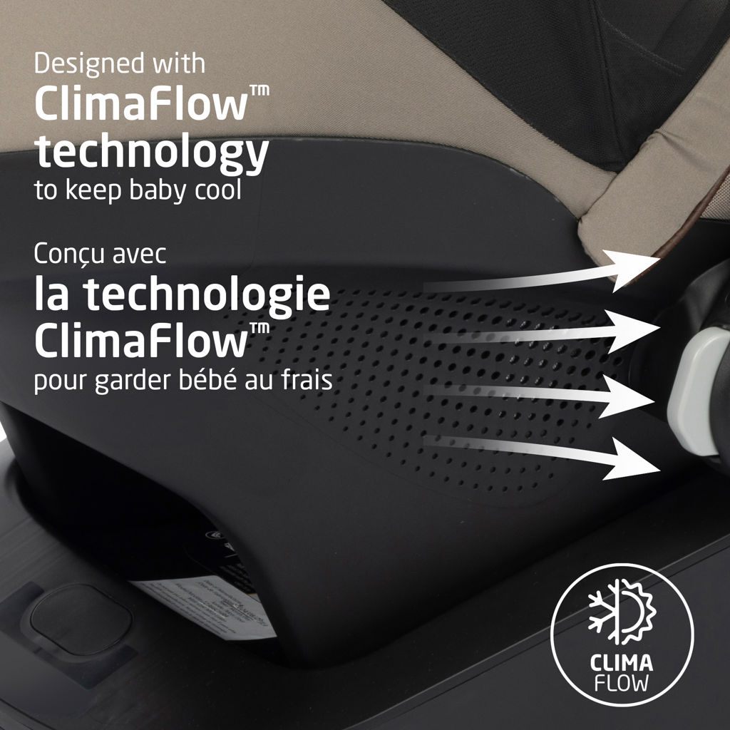Your baby's safety and comfort come first. The ClimaFlow™  technology shell provides added ventilation to keep your baby cooler. Side impact protection and plush padding on the removable infant head and lumbar inserts ensures a secure fit and cozy ride. Plus, energy absorbing EPP environmentally-friendly foam in the headrest area to effectively manage impact energy.