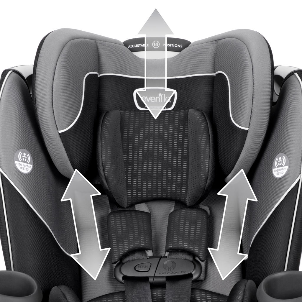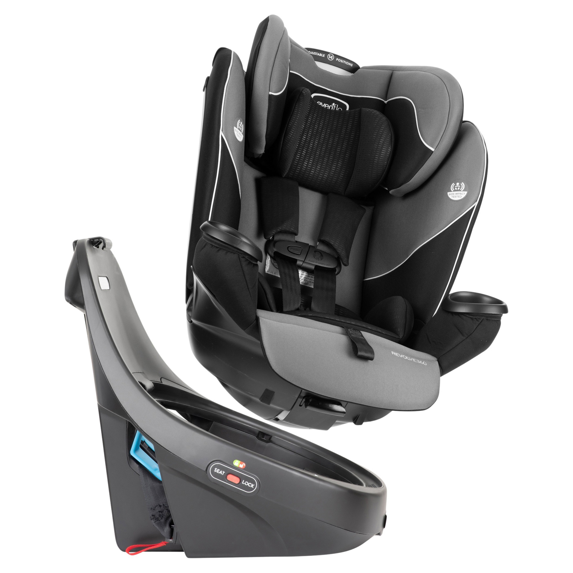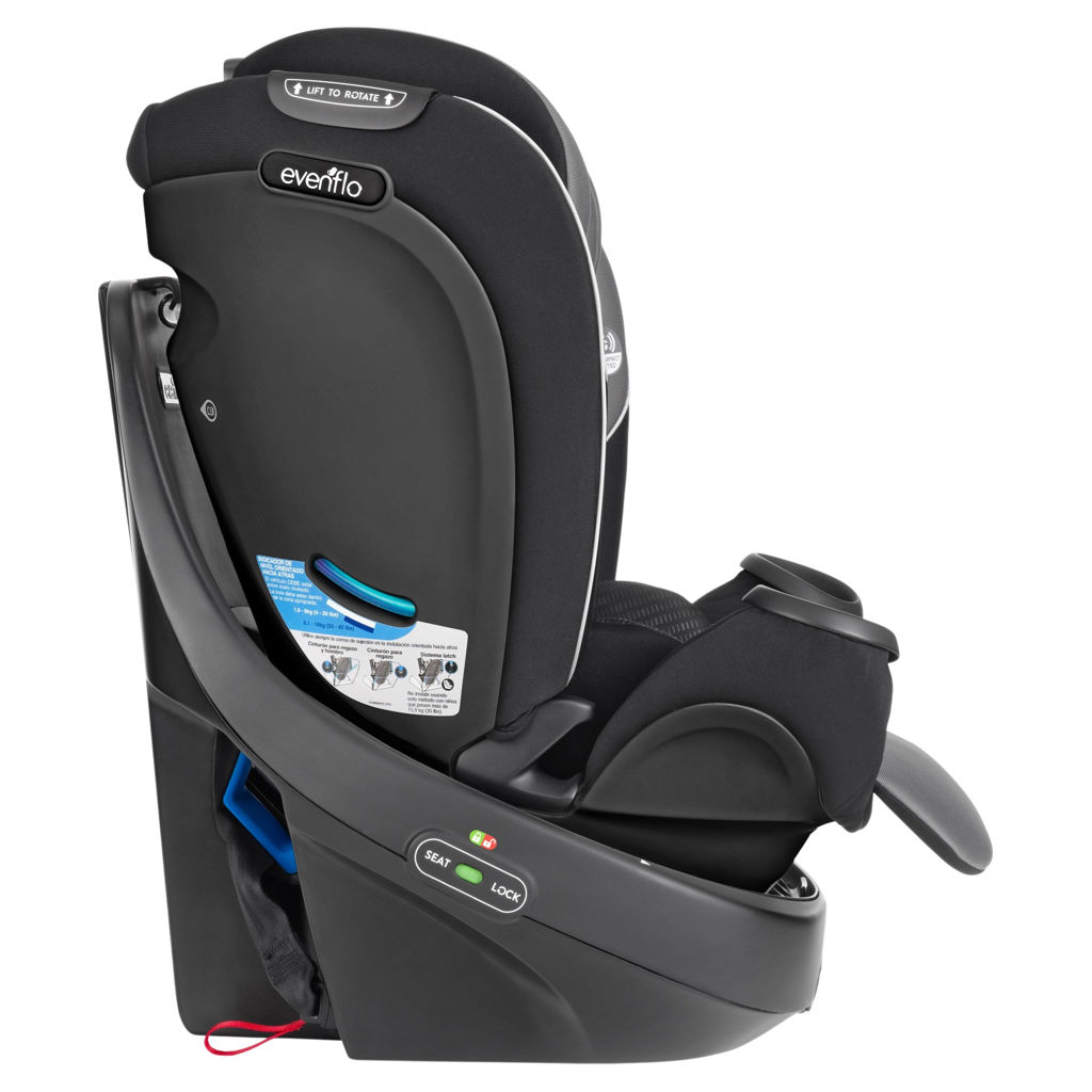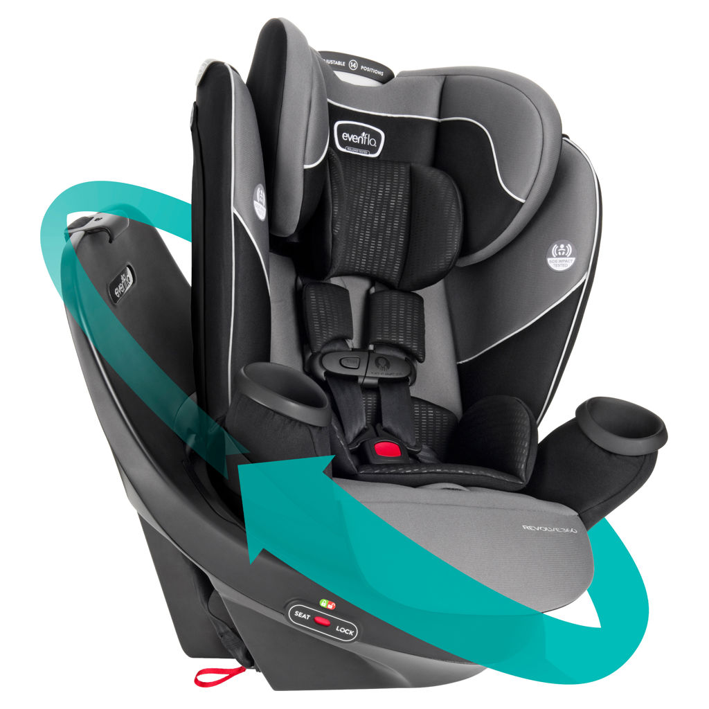 The future of car seat innovation is here: the introduction of Evenflo's Revolve360™ all-in-one rotating car seat. Once again, Evenflo leads the way with this easy-to-rotate, easy-to-install, extended-use rotating seat.