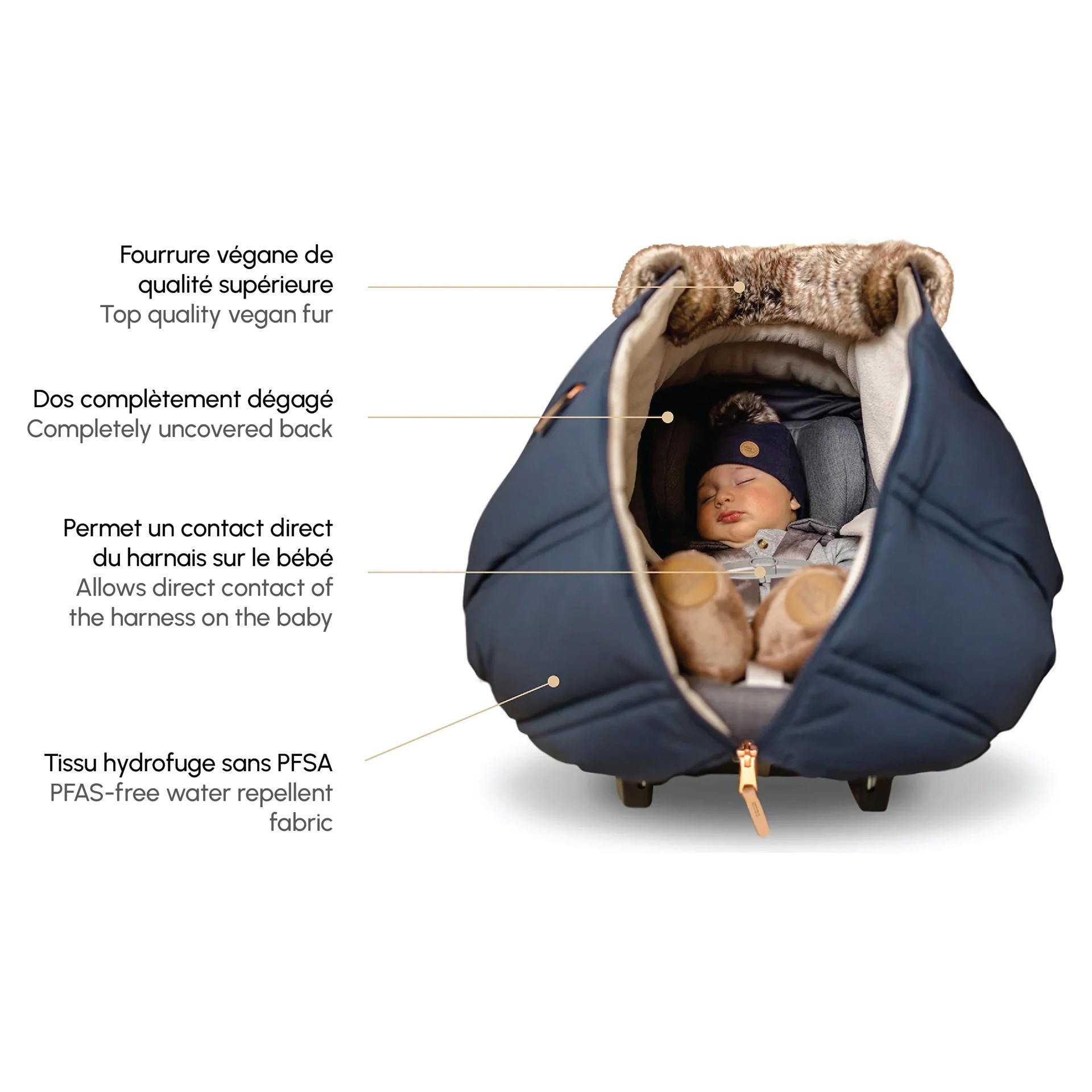The Petit Coulou winter shell cover is an essential accessory for parents of little ones. It can be easily removed thanks to its elastic base.