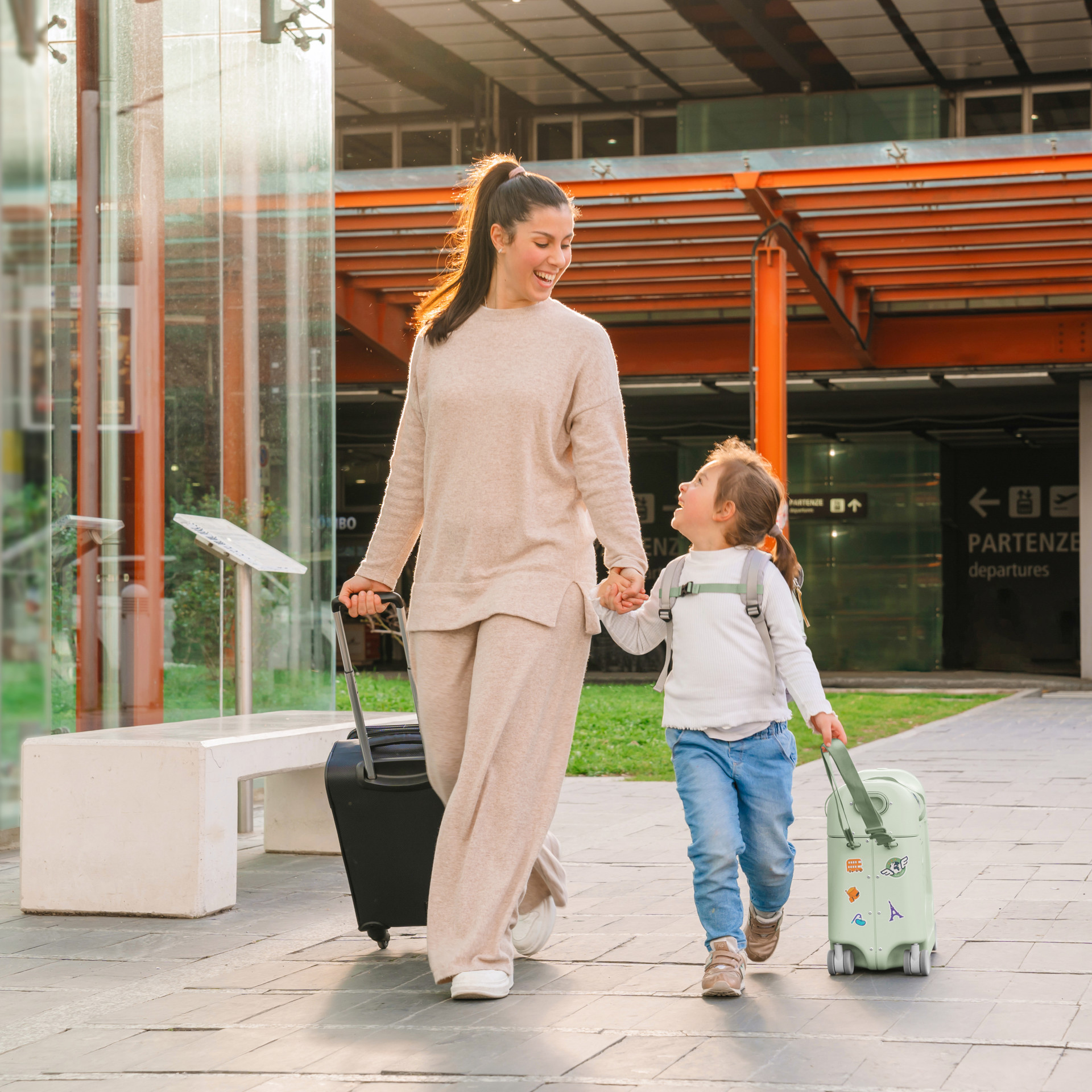 The ride-on suitcase is for children 3-7 years old, and the bed feature is best suited for children over 2 years old. Officially approved by many airlines.