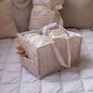 Our quilted nappy caddy has 2 outer pockets and 3 inner compartments, perfectly sized for storing nappies, creams and wipes.