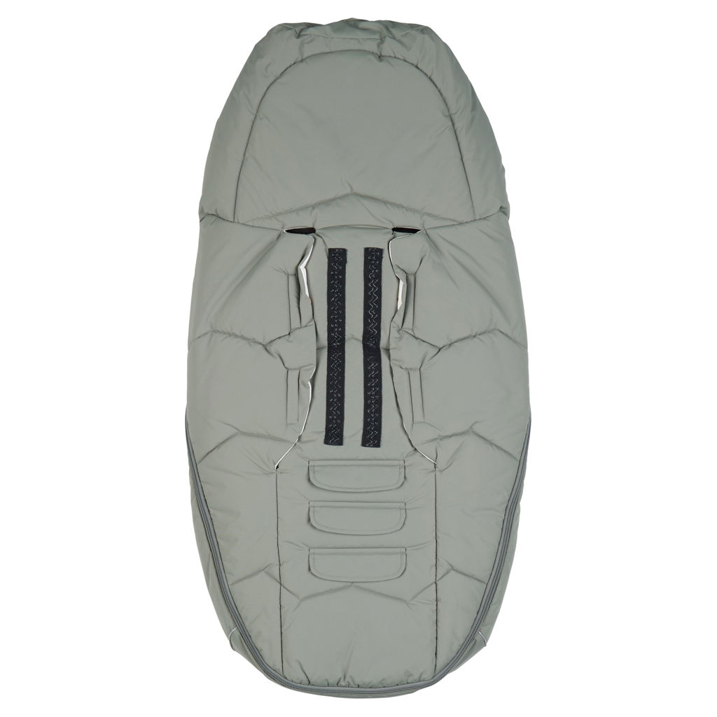 At the top, the stroller sleeping bag can be tightened with an elastic cord hidden in a small Velcro pocket. The entire front section can be zipped off and replaced by a longer top section, so that the bag can grow with the child. Along the bottom edge of the top is a practical reflective piping.